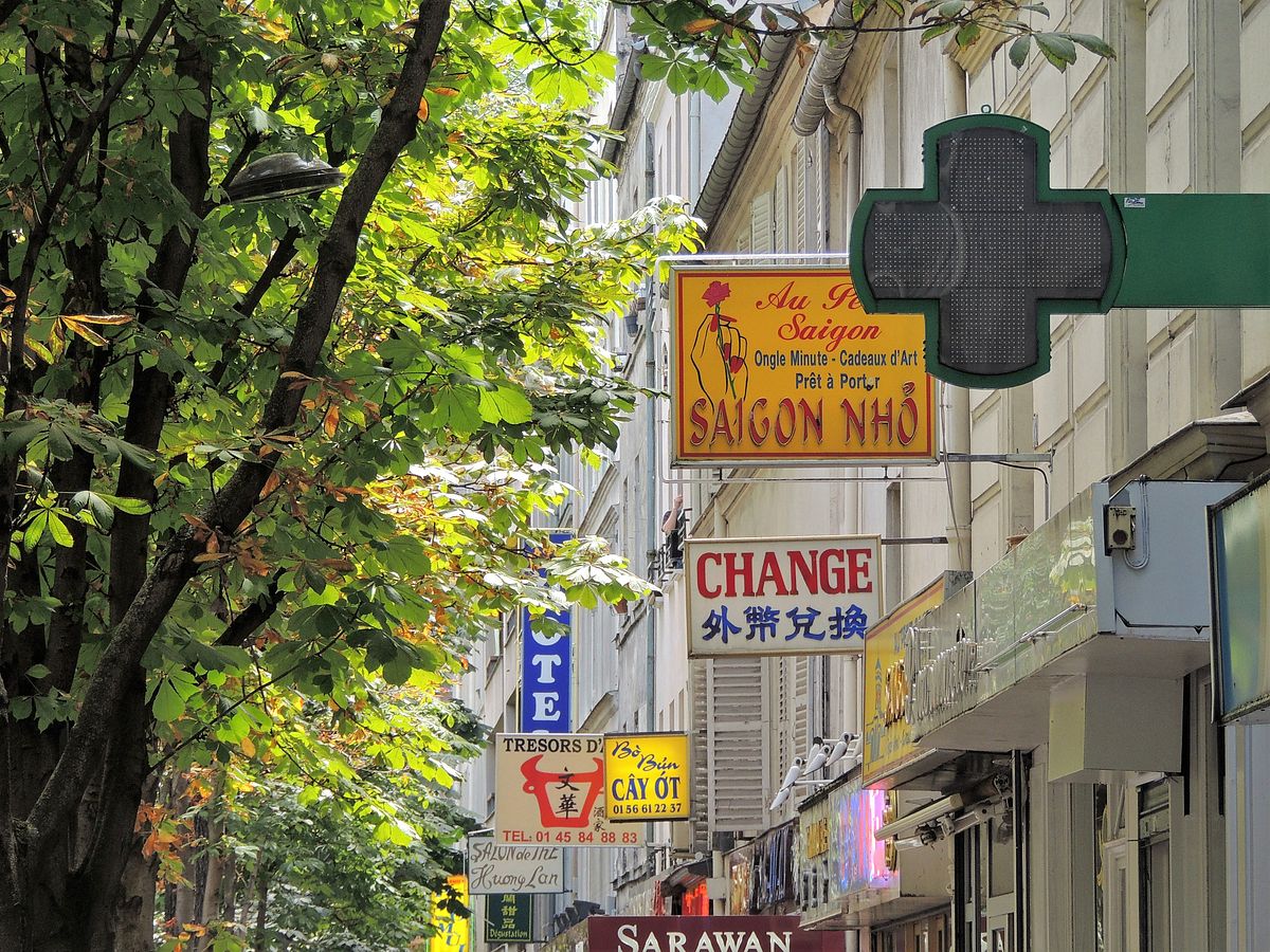 Door-to-door assortment of Vietnamese eateries and businesses in Paris.