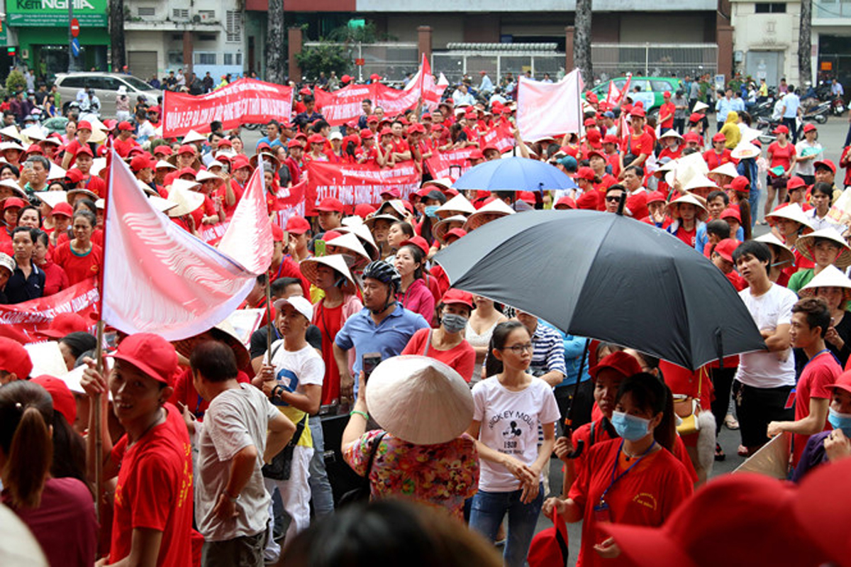 Scores of vendors in District 5’s An Dong Market convened yesterday morning in front of the commercial hub to protest the management board’s various instances of malpractice.