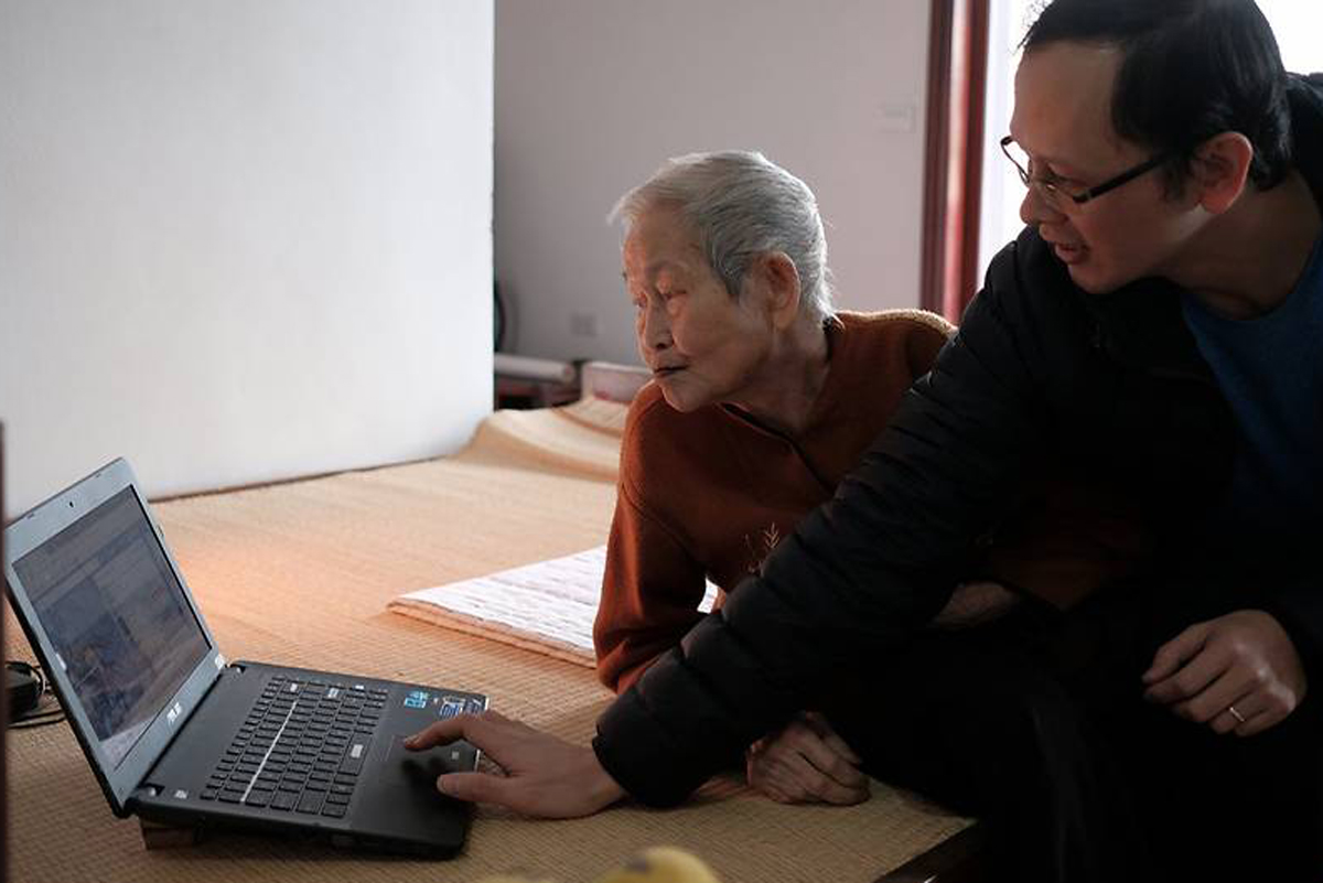 Despite her advanced age, a great-grandmother in Hanoi uses Google, Facebook and Skype to check the news and keep in touch with her family, in addition to regularly writing and painting.