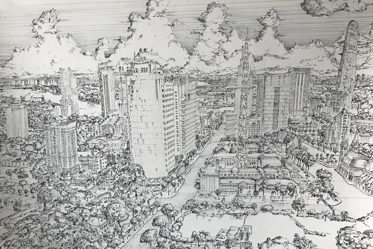 City Rising: Richie Fawcett’s Intricate Saigon Panoramas Hit L’Usine This Week