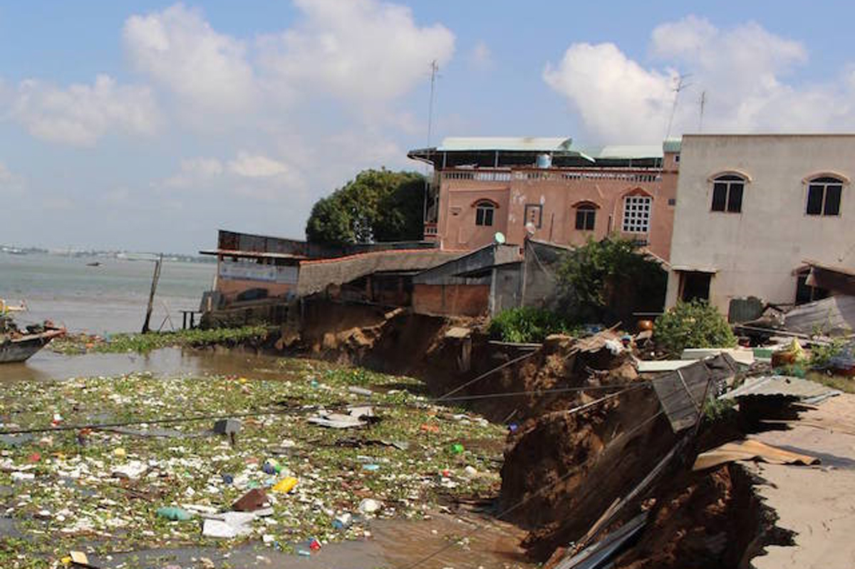 Last Saturday, an entire section of a riverbank in the Mekong Delta's An Giang province collapsed, dragging scores of houses into the river.