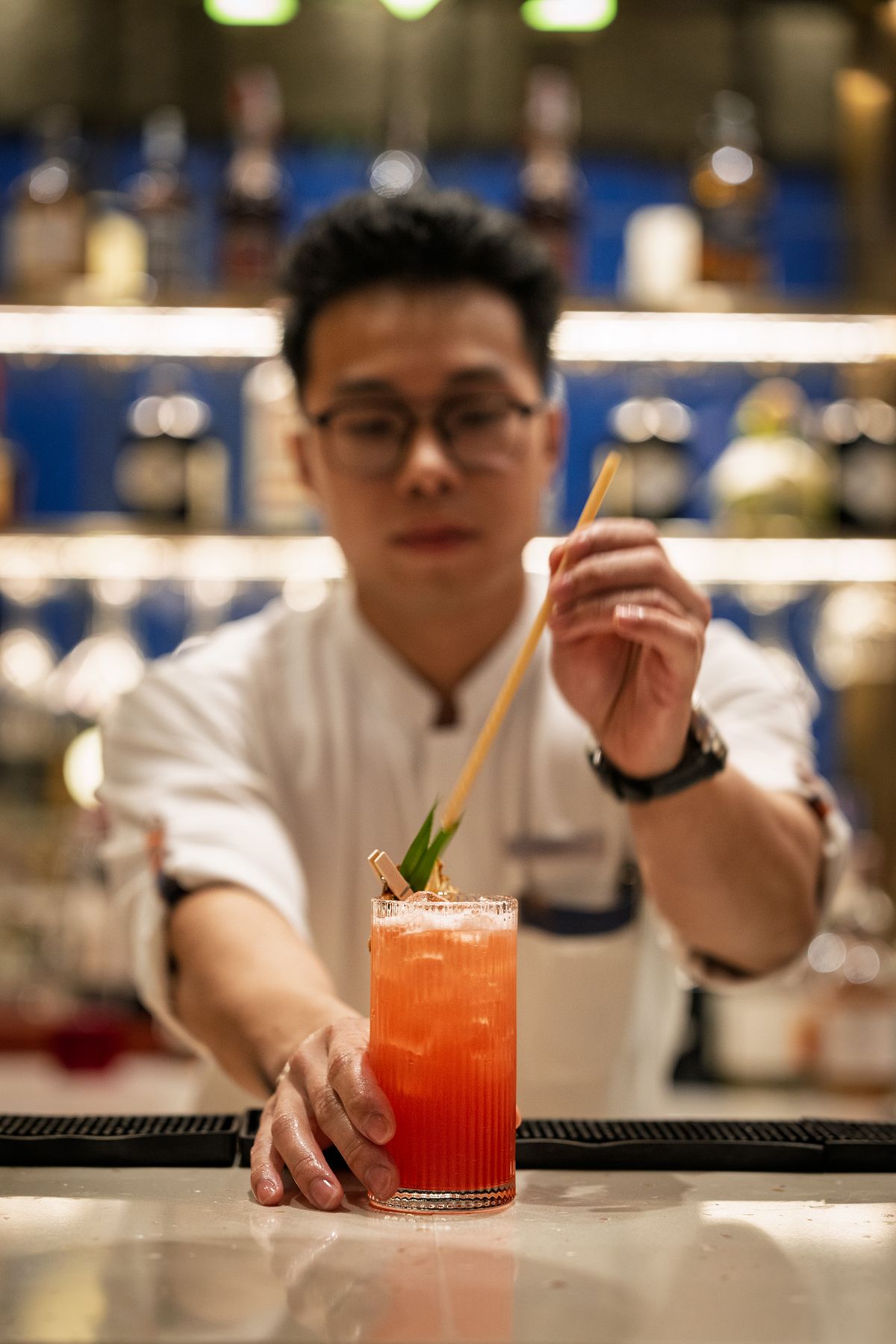 A Singapore Sling may be the most obvious drink to order upon your arrival. The glowing orange gin-based drink with a tropical profile not only matches the sunset, but is in line with The Straits’ identity as a Singaporean restaurant. While the cocktail’s precise origins are debated and the original recipe uncertain, the namesake beverage was first enjoyed in the now-city-state more than 100 years ago.
