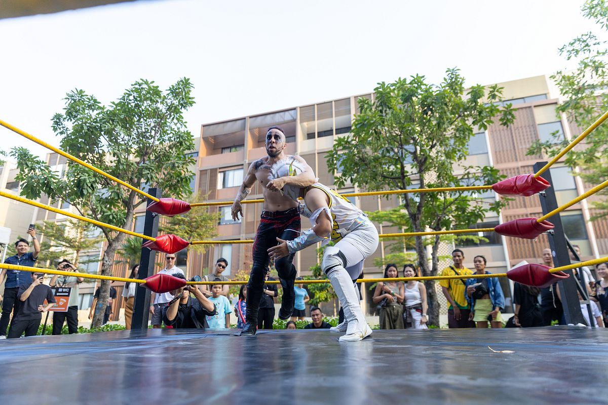 As festival-goers waited for their digestion to work, they found plenty to keep their attention. A full lineup of DJs curated by FTWR created a raucous atmosphere whose energy was only matched by the high-flying theatrics of Vietnam Pro Wrestling.
