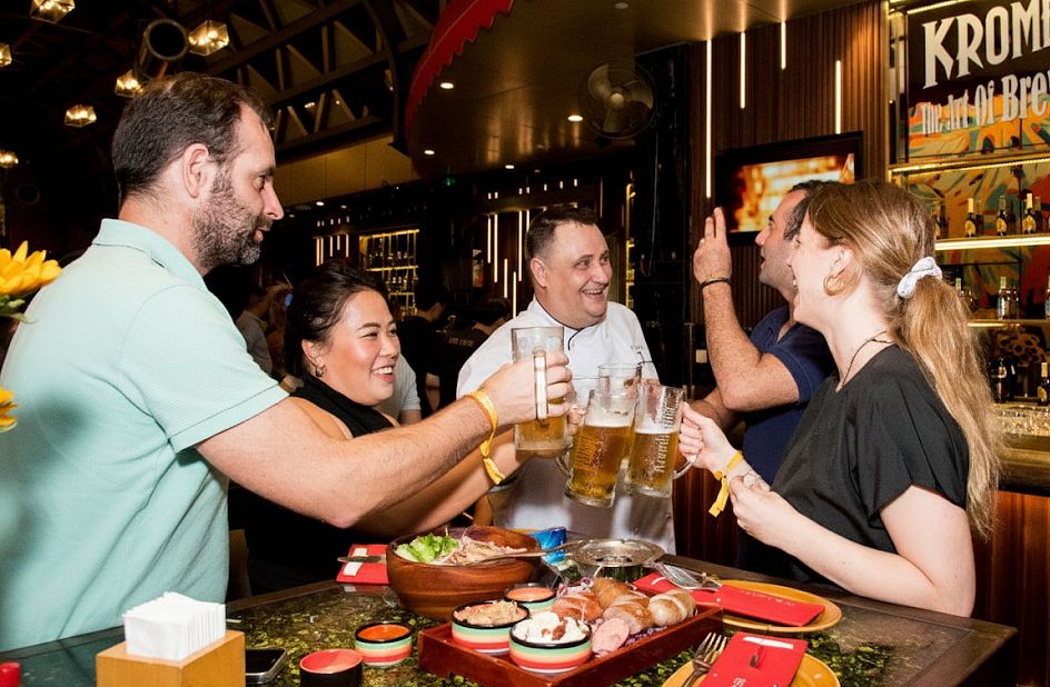 Beyond the lively atmosphere, at the heart of Oktoberfest lies its culinary and beer. Guests can savour unlimited servings of premium German beers, such as the robust and flavourful Krombacher. The experience also features a refined variety of international imports like Belgo and Edelweiss, alongside a curated selection of local craft brews. Unlike ordinary beers, every Oktoberfest brew is meticulously crafted from natural ingredients following strict processes to ensure an unforgettable, full-bodied flavour. The culinary experience is elevated with classic German fare – from sizzling sausages, believed to be a symbol of German hospitality, to golden roasted pork knuckles and soft, chewy pretzels, offering a unique culinary experience that brings people together at Oktoberfest.