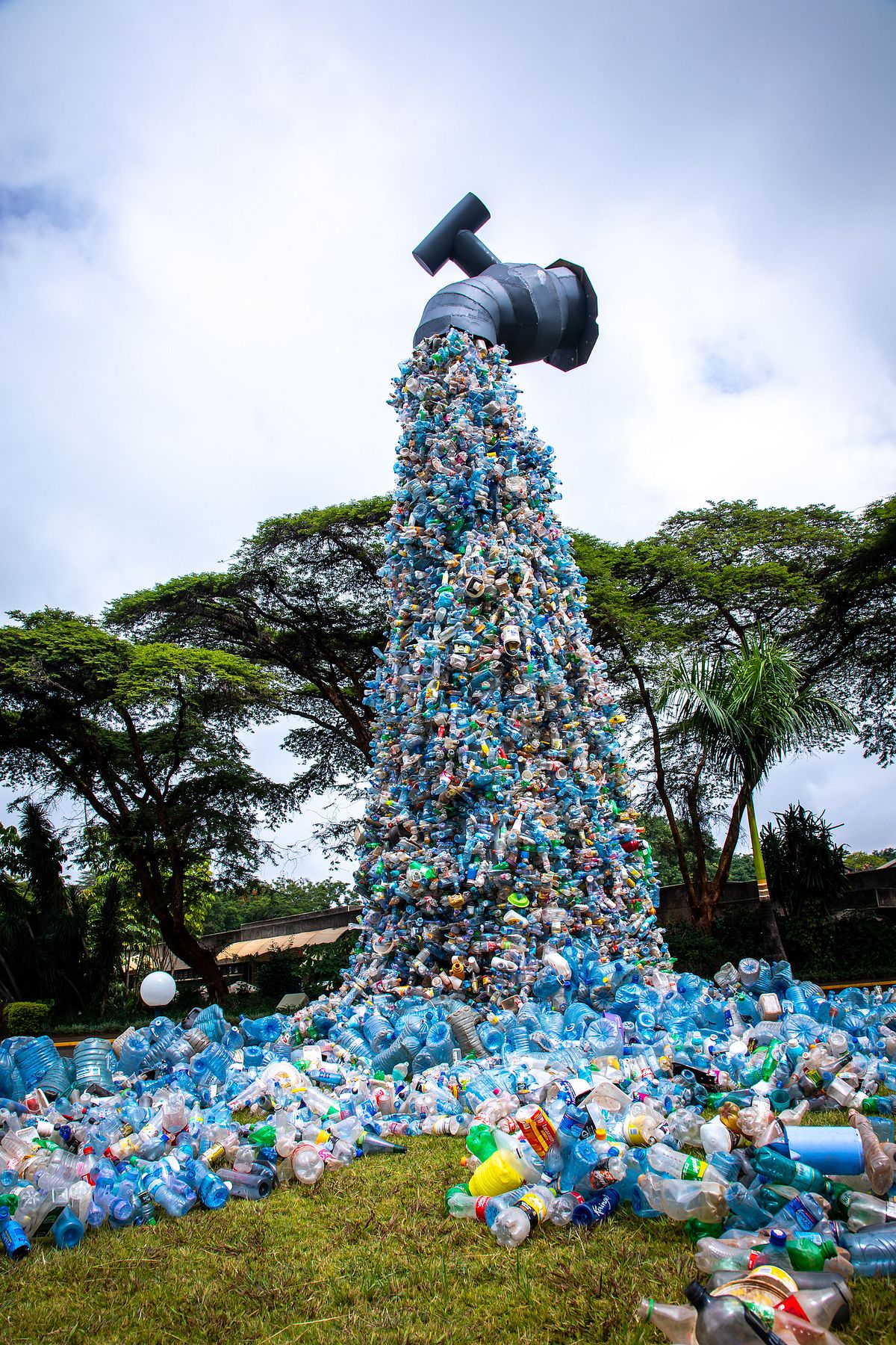 An art installation of a tap spewing plastic sourced from a slum in Nairobi, displayed at the UN Environment Assembly 5.2 that took place in the city in 2022. The most recent round of negotiations in Geneva in August 2025 ended with a weakened draft text. Photo by Ahmed Nayim Yussuf / UNEP, CC BY-NC-SA.