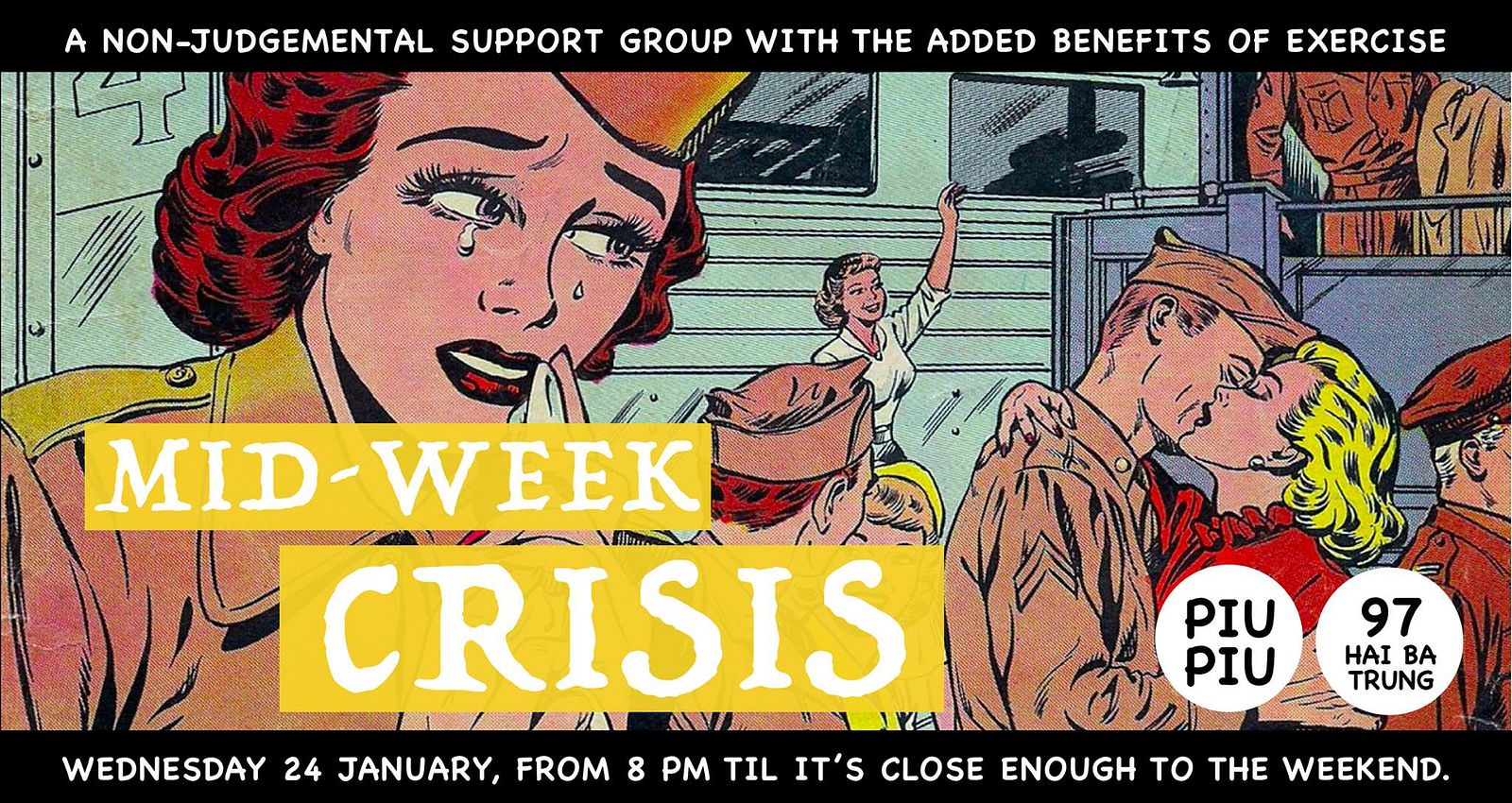 Introducing “Mid-Week Crisis”, a casual gathering bringing together those for who the weekend seems like moving in at a speed of 2 millimeters per hour.