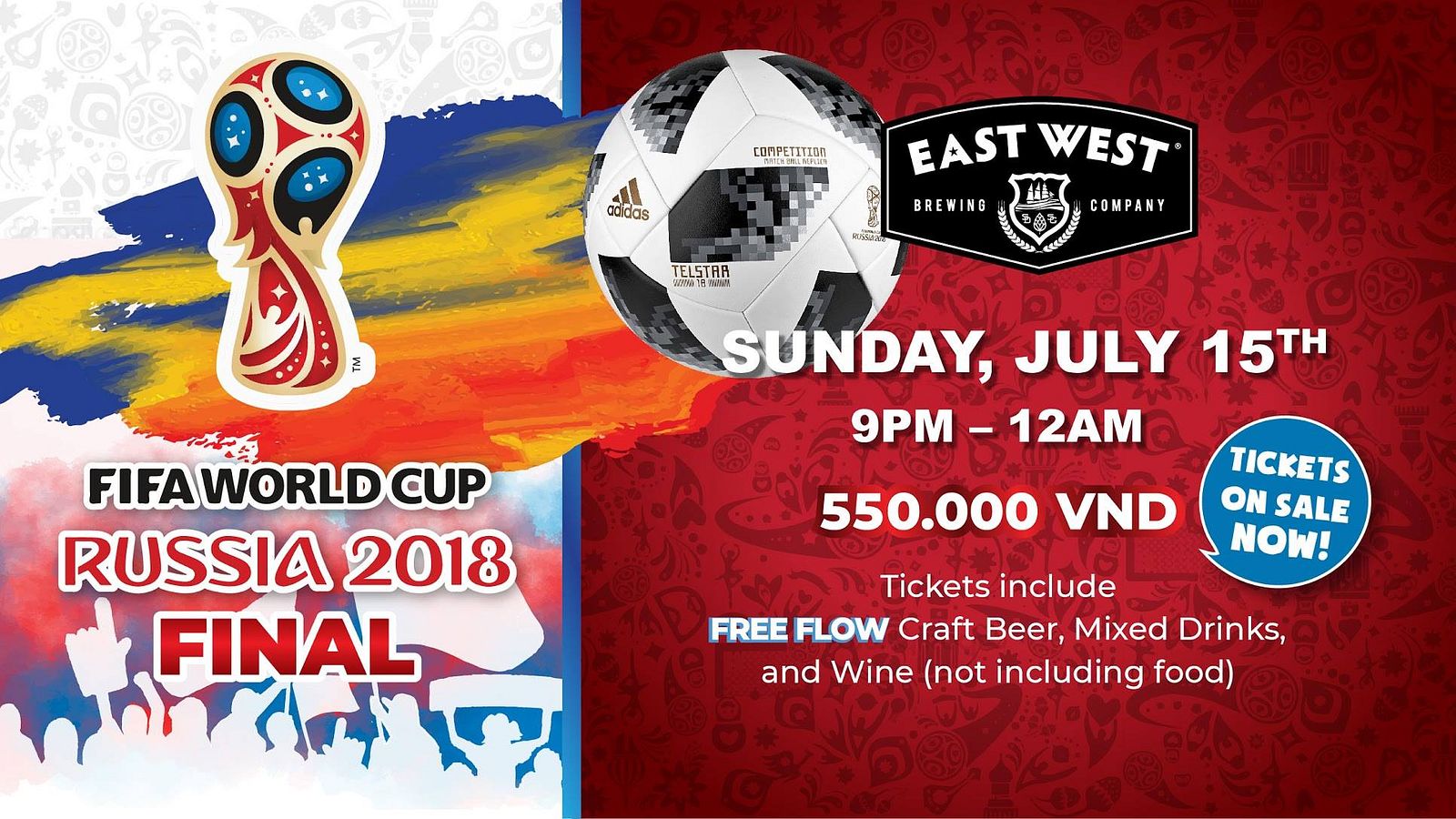 WHATS BREWING: Come join us for the highly anticipated match between the two finalists (TBD), on Sunday, July 15th at 9PM - 12AM on 3 giant screens at the brewery! Tickets at 550.000 VND includes a screening of the World Cup match, and #FREEFLOW craft beer, mixed drinks, and wine throughout the game!