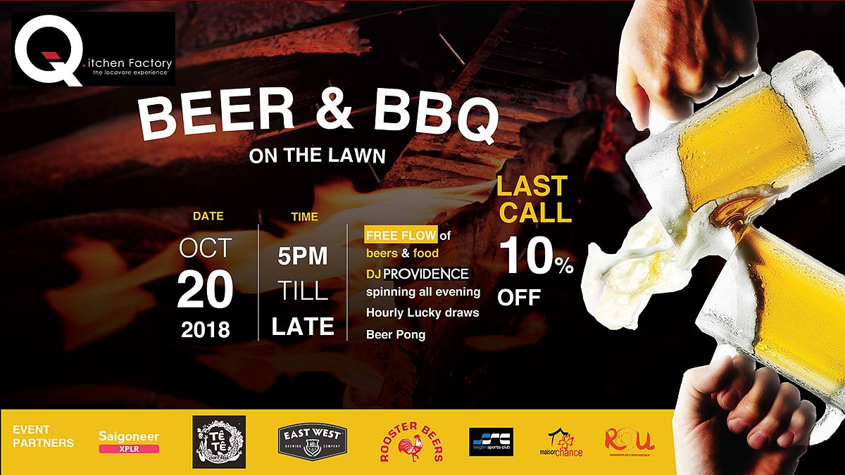 From the organizer: BEER & BBQ ON THE LAWN, a one-of-a-kind outdoor party featuring the best craft beers in Saigon and BBQ food created by Q.itchen Factory.