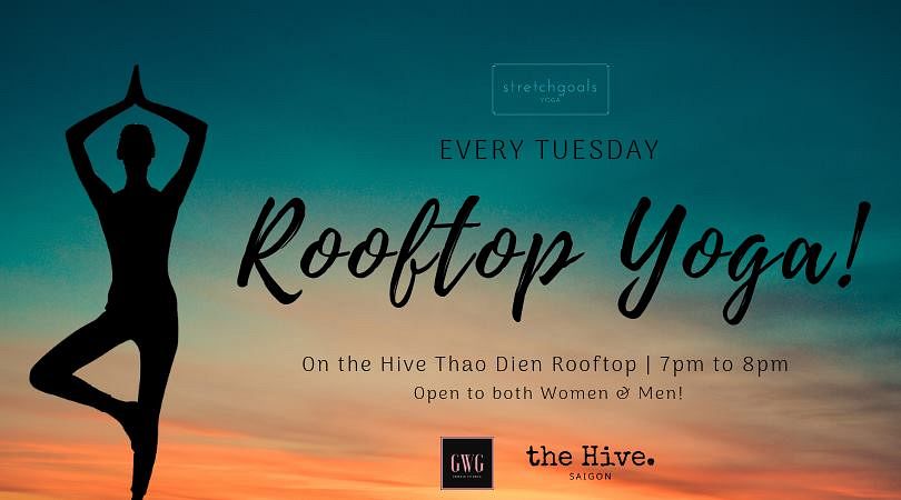 Rooftop Yoga with The Hive Saigon & Girls with Guns x Stretch Goals Yoga on The Hive Rooftop (level 4).