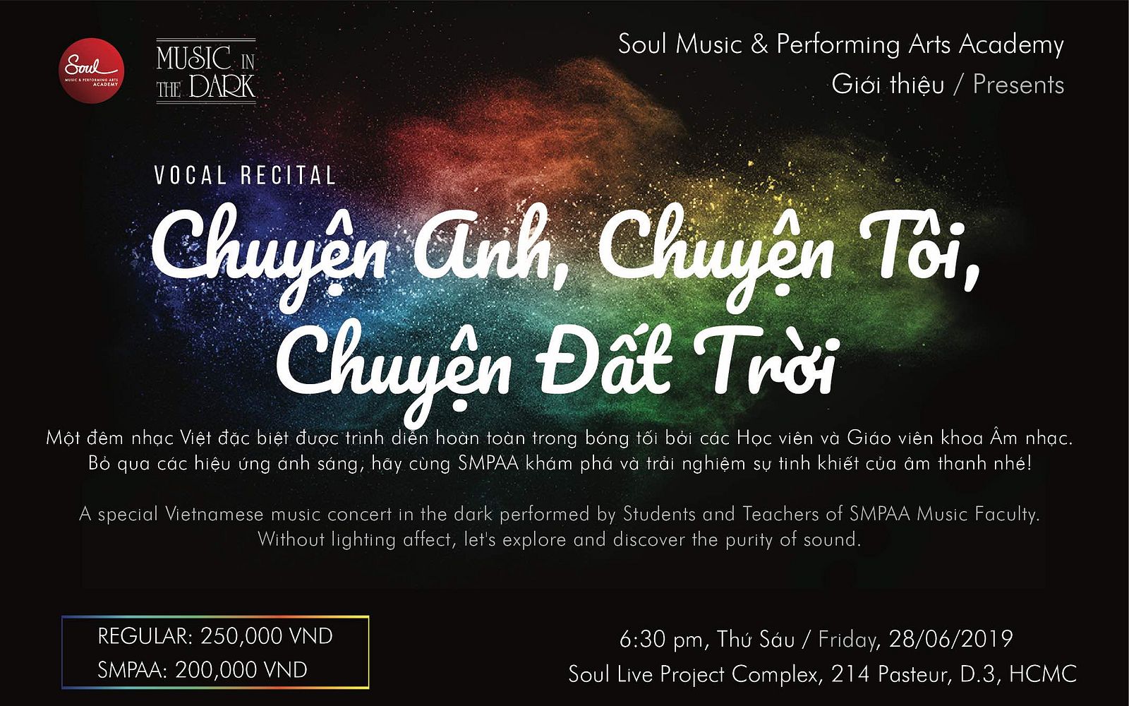 MUSIC IN THE DARK, a special concert series where the audience enjoys music in total darkness, has returned with a new concert -"Chuyen Anh, Chuyen Toi, Chuyen Dat Troi".