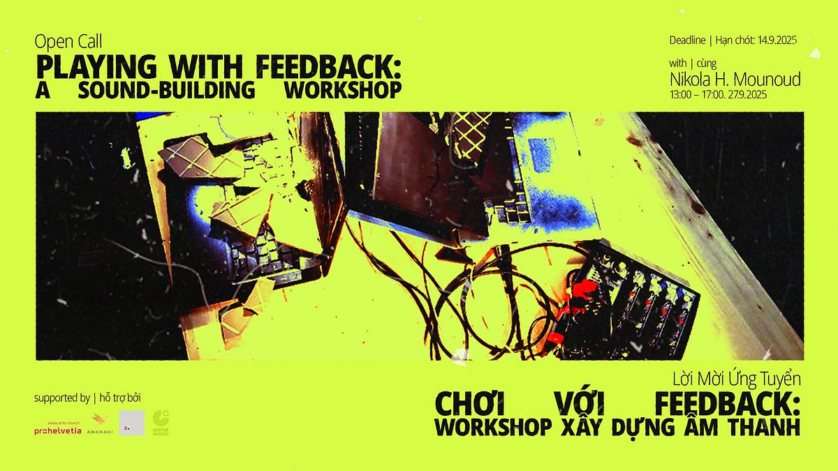 ‘Playing with Feedback: A sound-building workshop’ is open to sound practitioners, both beginners and advanced players, interested in the field of electronic music, especially computer music. With the guidance from Nikola H. Mounoud, a Hanoi-based Swiss sound artist, participants will explore the modular capacity of Cycling74’s software MAX/MSP to create feedback loops – a process where an audio signal is sent from an input to an output and then back into itself.