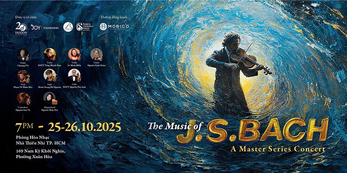 We cordially invite you to join us, to listen, to feel, and to commune with the "soul of the Baroque." This concert is co-organized by Saigon Classical, Joy Foundation, the Vietnam Connection Music Festival (VNCMF), and the Saigon Chamber Music Society, with the support of MORICO as part of the A Master Series Concert project. The event also proudly marks the 10th anniversary of the Vietnam Connection Music Festival.