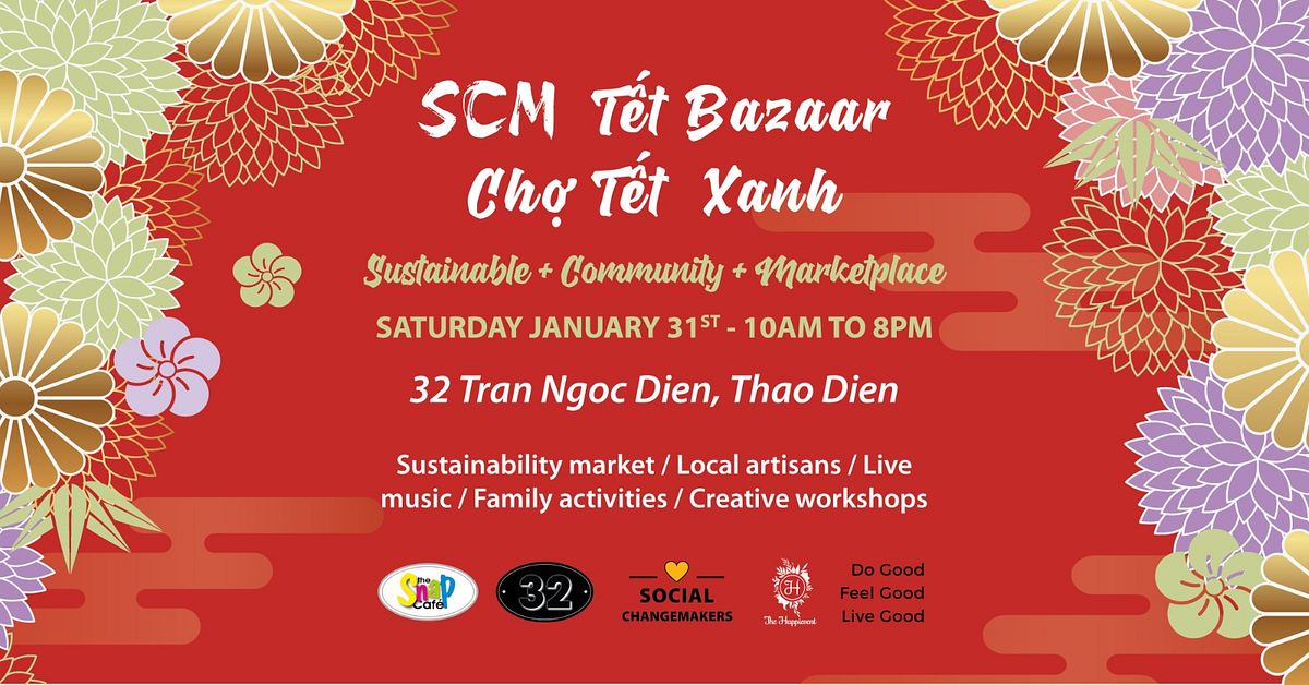 Welcome to SCM TẾT BAZAAR, a vibrant community event where you can immerse yourself in the traditional Vietnamese Tet atmosphere! Join us in exploring a green lifestyle and discovering eco-friendly local specialties!