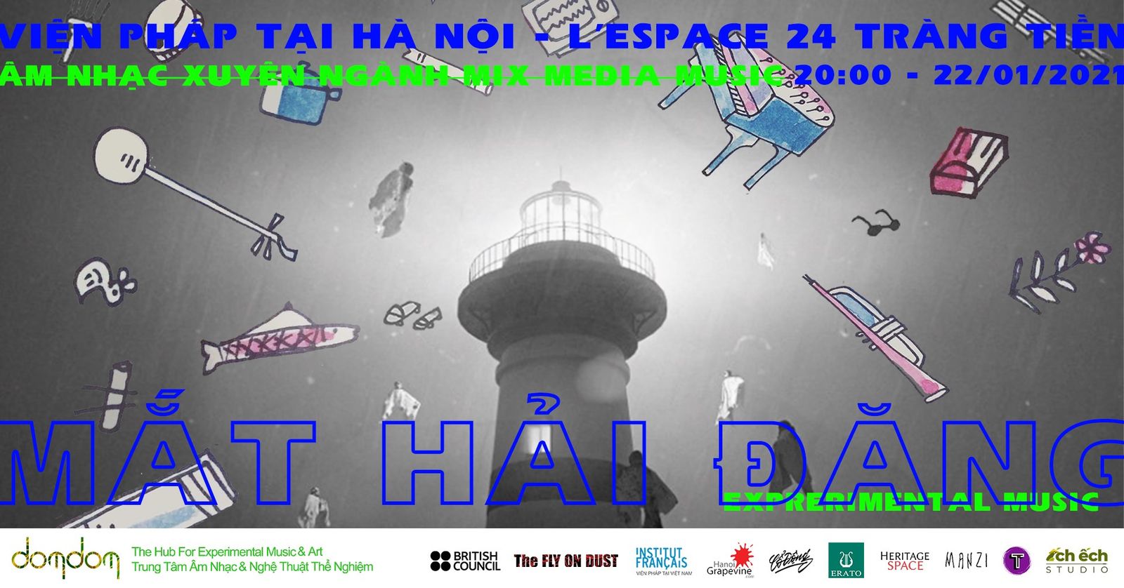 Four new works, six unexpectedly potential faces of the VieTnamese Experimental Music and Art scene. After six month “deep diving” in the first "catalyzing laboratory" dedicated to new forms of music which is initiated and run by Domdom to nurturing and developing the new ‘authors’, what will they have to show us? Come to EYE SEA LIGHT to discover what is achingly aimed for in the gazes of the young artists, like the lonely Lighthouse surrounded by the vast ocean…