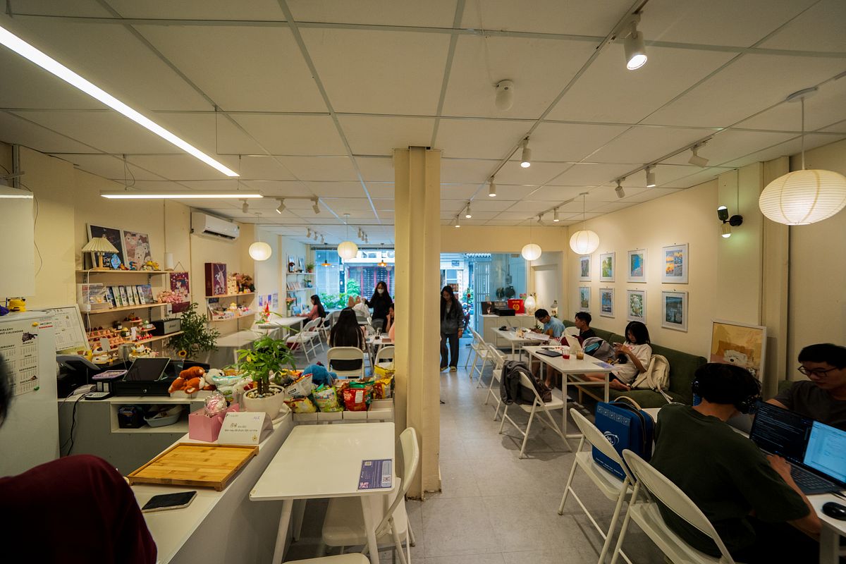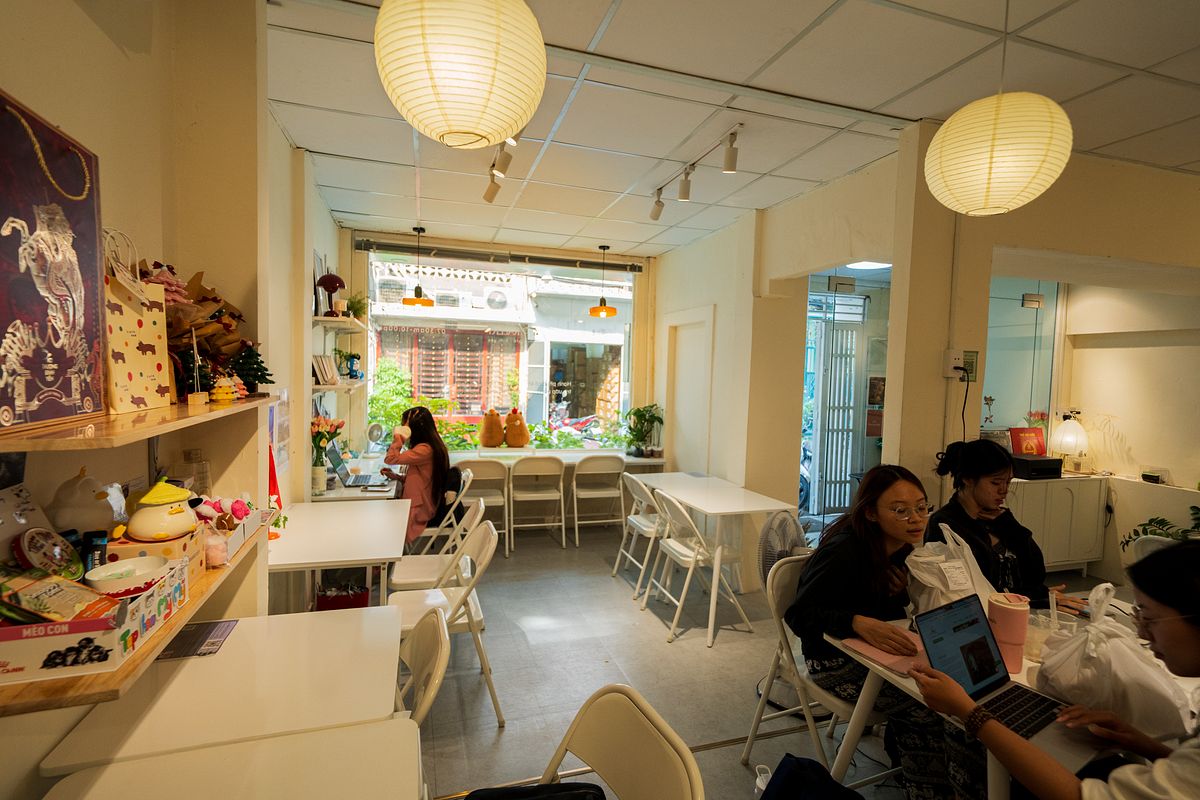 An offshoot of the first location on Ký Con, Auvery Cafe is a welcoming corner on quaint Lê Ngô Cát Street to hide from traffic. Its spacious sheltered and tree-lined courtyard is a well-ventilated seating choice on early Saigon mornings when the temperature is still cool. Auvery’s resident feline is half-ginger, half-cream Em, who might be grumpy-looking at first but will happily nuzzle your leg after a few visits — that is, if you’re lucky enough to visit during Em’s non-nap hours.