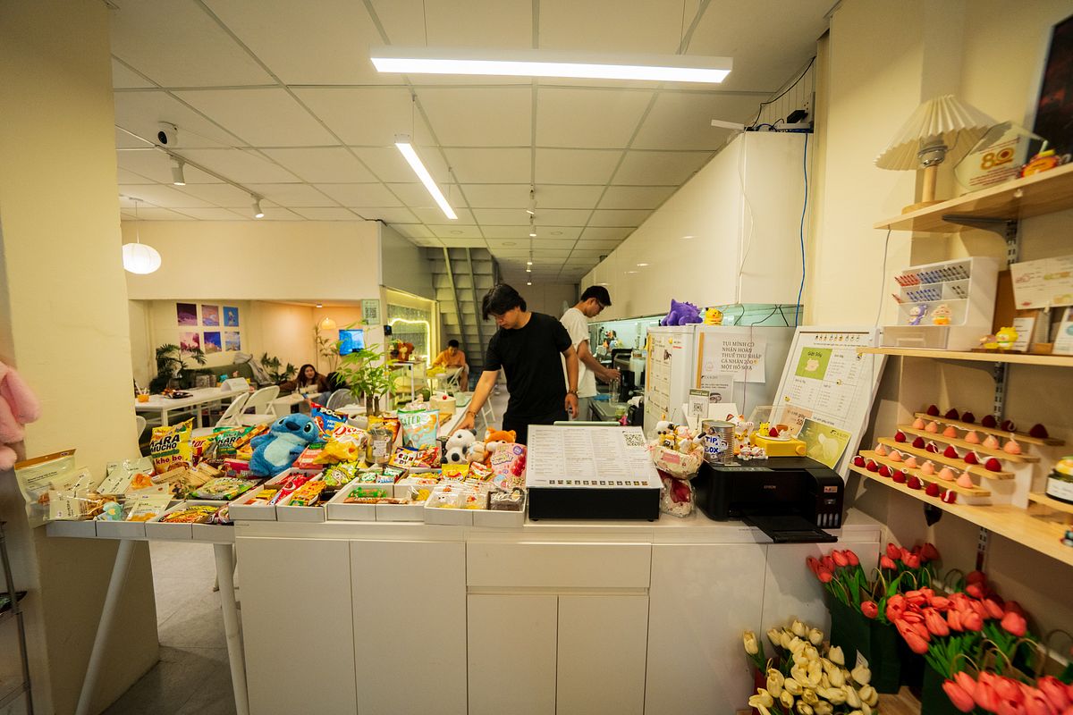 As a cafe, Kalery is structured around working and studying instead of boisterous chats: the lighting is bright, there are many power sockets, and the quietude is lovely. There are a wide assortment of snacks, sweets, stationery, and even cat treats on sale at the counter. The cat snacks are obviously there for fans of Mỹ to befriend him. In spite of the feminine name, Mỹ is a boy, and an exceedingly handsome grey tabby boy at that. He can be spotted inspecting the cleanliness under the tables or rolling lazily on the floor.