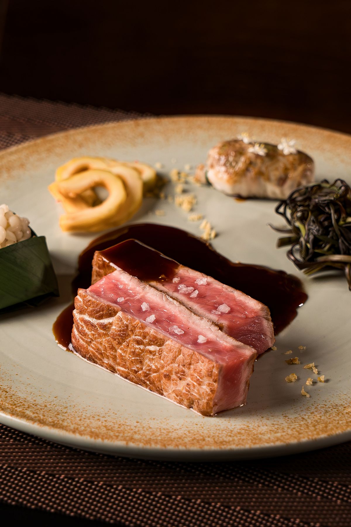Chef Trung's Củ Chi young beef is a great example of his aesthetic. Traditionally enjoyed as a casual drinking dish, Chef Trung reimagines it by pairing rich Bần fermented soybean paste (tương bần) with cape gooseberry (trái thù lù), using gentle acidity to balance sweetness and enhance depth. The result feels both nostalgic and surprising. Without distracting, it is a dish that invites conversation.