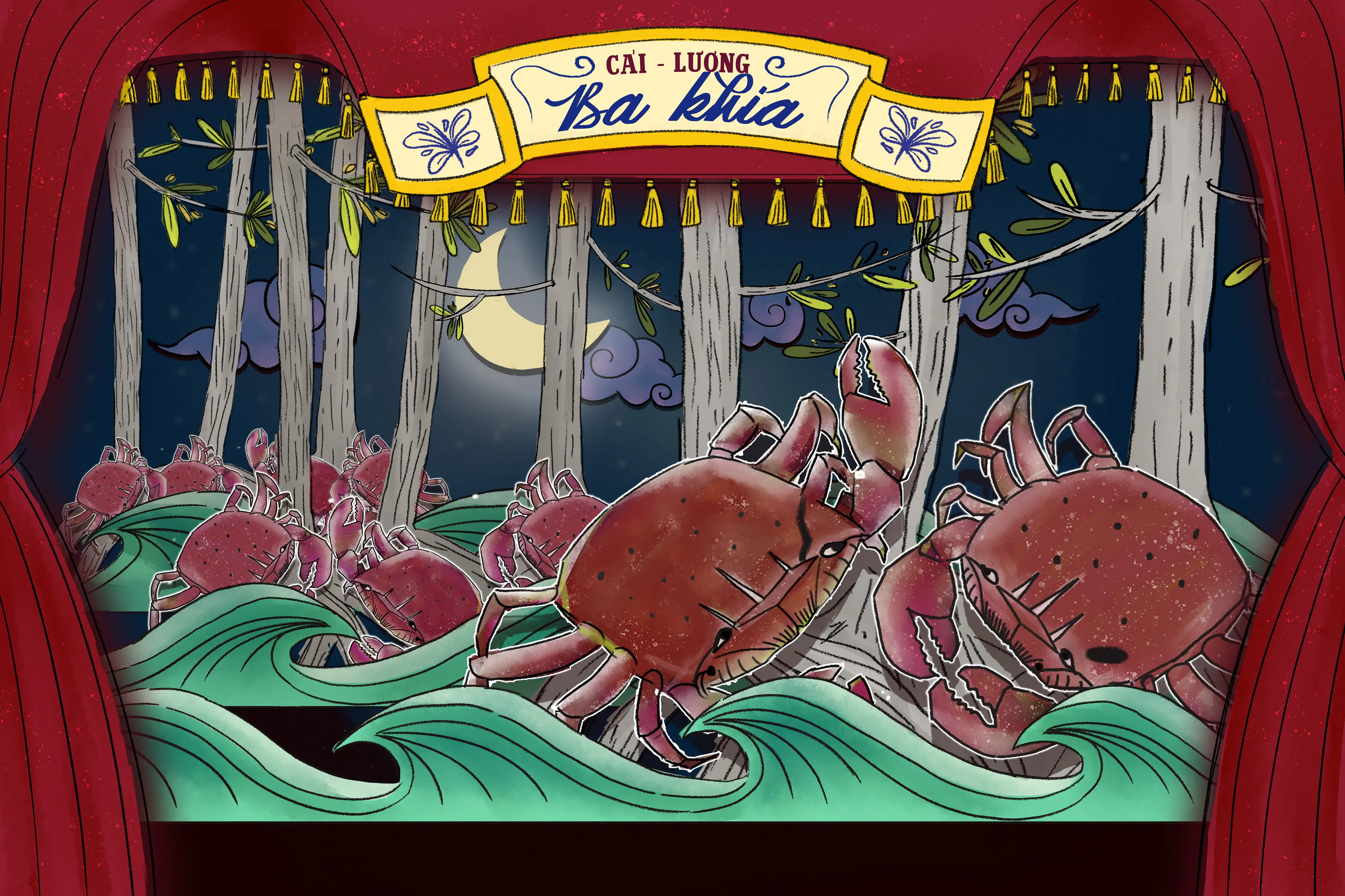 Đêm nước ròng, bãi bùn lấp lóa đèn đội đầu, gốc mắm gốc đước bu đen một đám cua nhỏ. Ở quê tôi, người ta kêu tụi nó là ba khía.