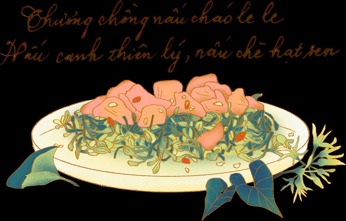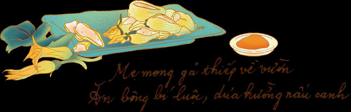 Mấy bữa chán ngán thịt cá, tôi hay tha thẩn đẩy xe qua lại trong quầy rau của siêu thị gần nhà. Bó xôi, mồng tơi, rau đay, rau muống xanh mướt một góc gian hàng, tha hồ lựa chọn. Lâu lâu, tôi lại thấy giữa những lá cải bành trướng là mấy bịch bông bí xếp ngay ngắn, khiêm nhường trên quầy. Hoặc là mấy hộp bông điên điển, thiên lý lốm đốm xanh vàng qua lớp màng thực phẩm bọc cẩn thận. Có bữa, tôi thấy mình như trúng độc đắc khi siêu thị có bán luôn bông so đũa, cái thứ bông mà nhiều người còn chưa bao giờ biết tới tên.
