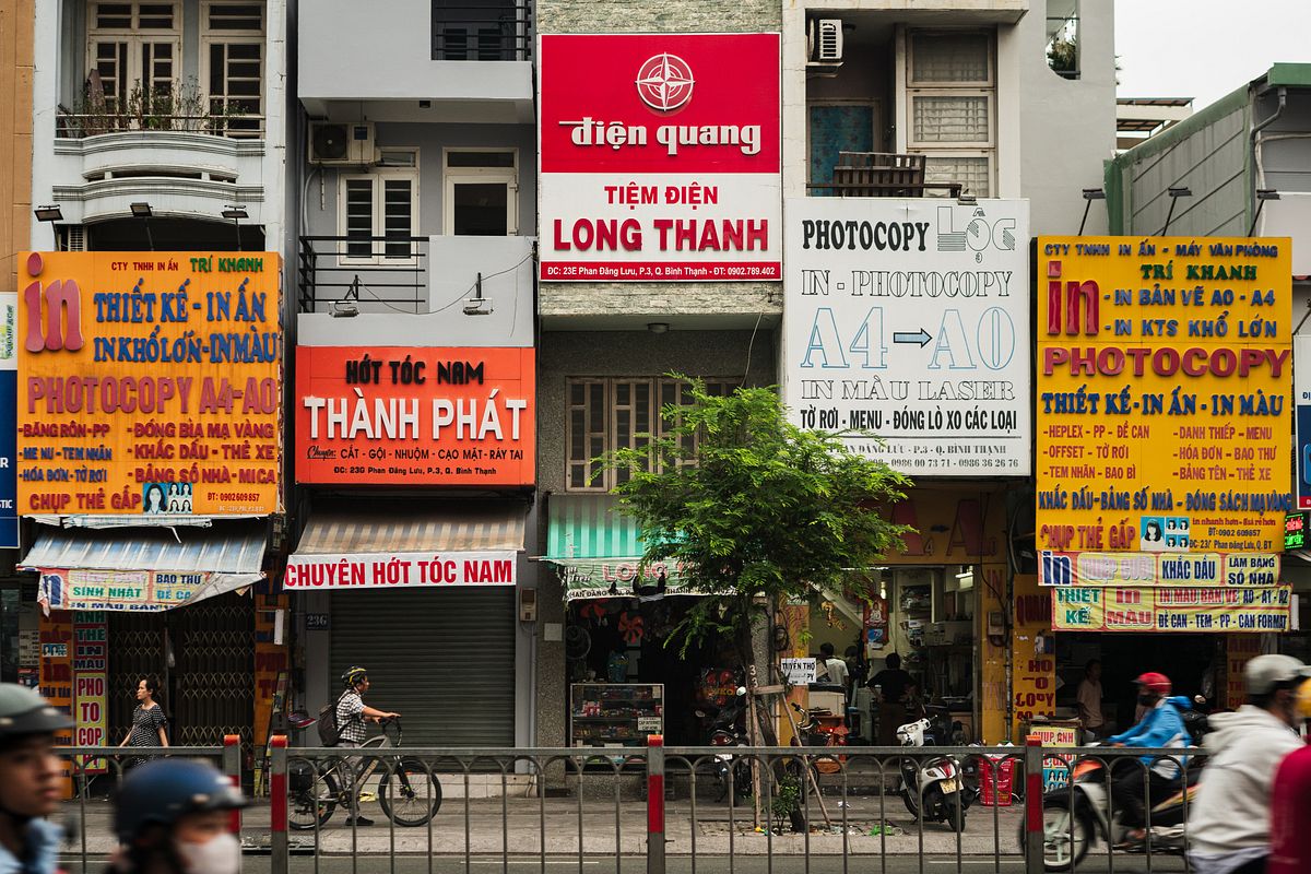 Kiểu biển hiệu vừa rối vừa đơn điệu ấy bắt đầu xuất hiện vào thập niên 2000, và từ từ lây lan khắp Sài Gòn, đặc biệt quanh những con đường buôn bán sầm uất, như loại nấm mốc ăn mòn kiến trúc bản địa và thải ra bào tử gây nhức đầu, nhức mắt. Cá nhân tôi tin rằng sự phát triển của công nghệ in ấn vừa nhanh vừa rẻ là nguyên nhân dẫn đến một Sài Gòn đầy ô nhiễm thị giác như hiện nay. Đã từng có thời từng biển hiệu là một tờ giấy trắng để họa sĩ tung hoành tô vẽ, chứ không chỉ đơn thuần là công cụ cho có như bây giờ. Từng kiểu chữ, từng gam màu, từng nét cọ đều được chăm chút qua bàn tay người thợ vẽ.