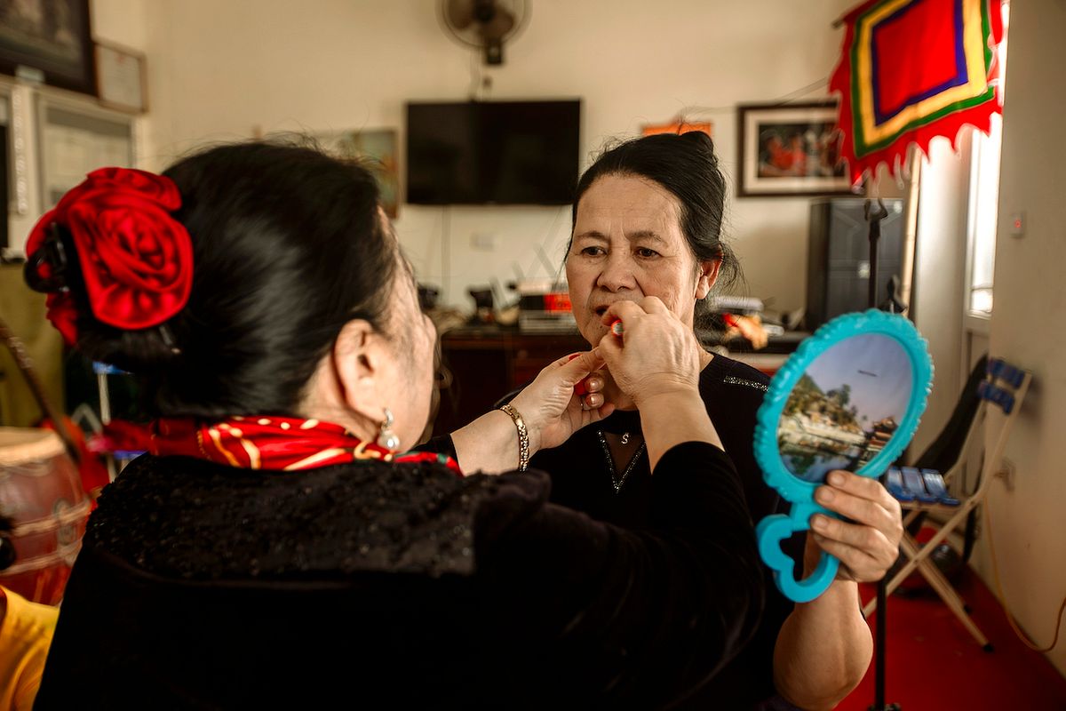 Nghệ nhân chuẩn bị trước giờ diễn.