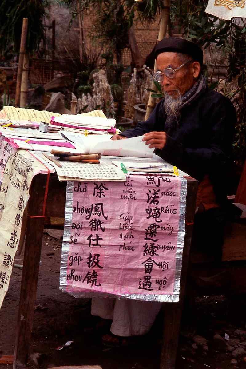 Ông đồ viết chữ trước Chùa Hương, Hà Nội, 1995. Nguồn ảnh: tài khoản Flickr @lonqueta.