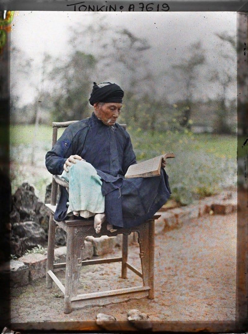 Thầy đồ ngồi đọc sách, 1915. Ảnh: Léon Busy.