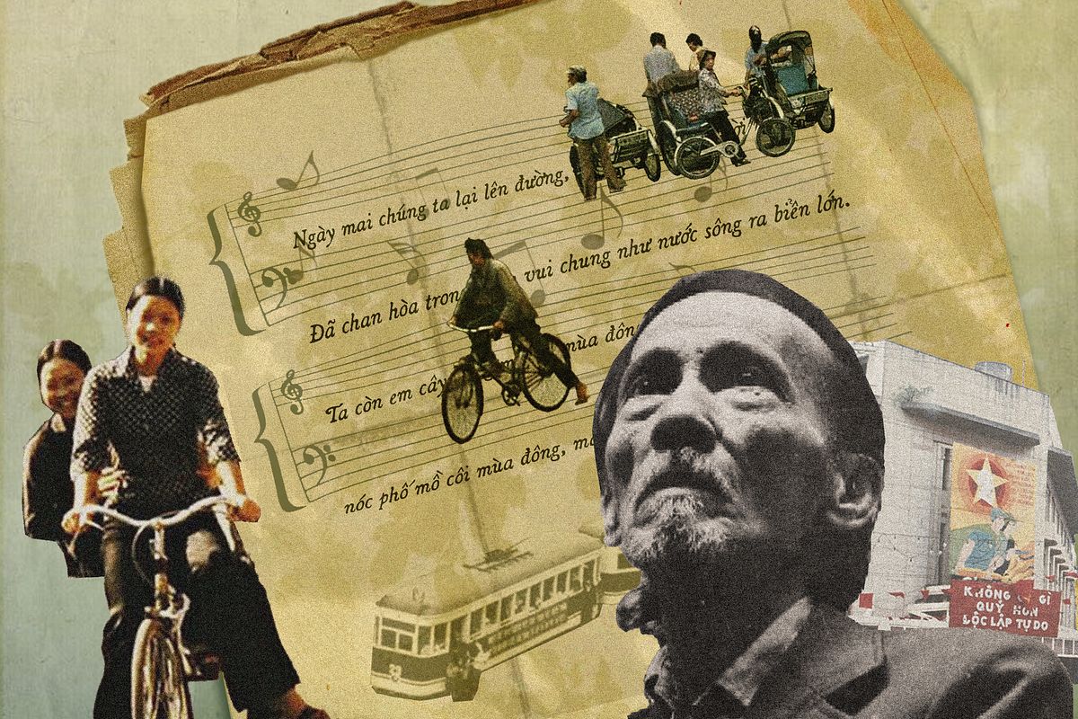 Những bài hát cách mạng vang lên ở mọi ngõ ngách, phủ lên thành phố một thanh âm mới, gột rửa mọi dấu vết của một Hà Nội từng bị coi là “tiểu tư sản.” Trong khi miền Nam còn chưa rõ sẽ đi về đâu, thì ở miền Bắc, lý tưởng cách mạng đã trở thành kim chỉ nam cho cả một thế hệ. Hào khí ấy hiện lên trong ‘Từ một ngã tư đường phố’ của Phạm Tuyên, khi ông viết: “Từ một ngã tư nhỏ bé đã thấy tương lai đang về/Trong mỗi dáng người ngẩng đầu cao bước nhanh đi trên hè.”