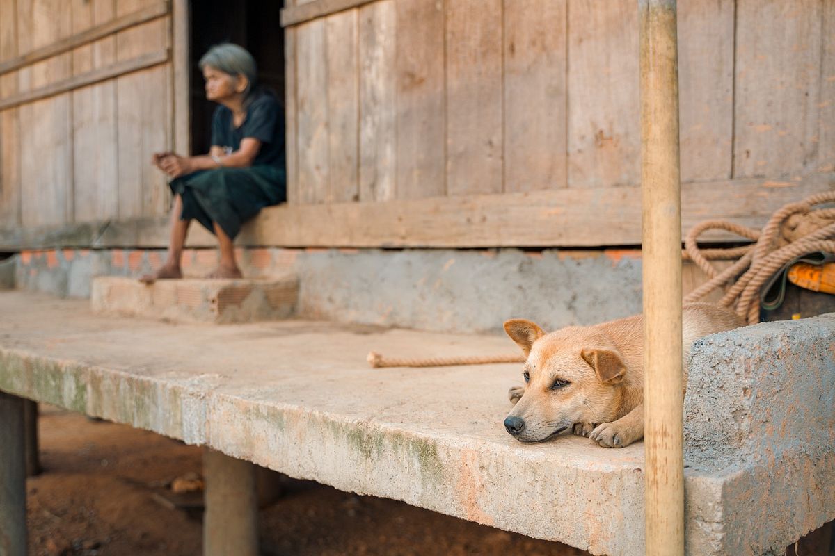Phút tĩnh lặng của một cụ già bên chú chó nhỏ.