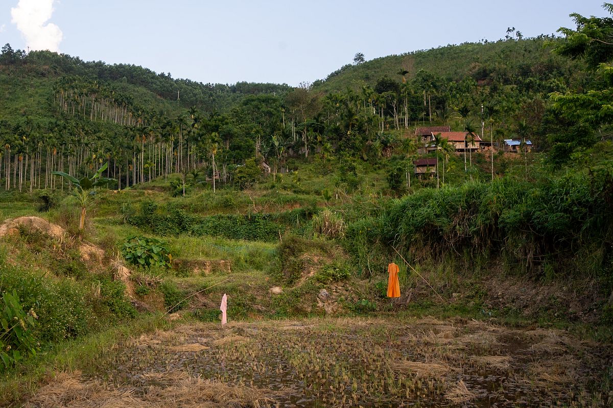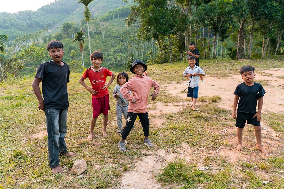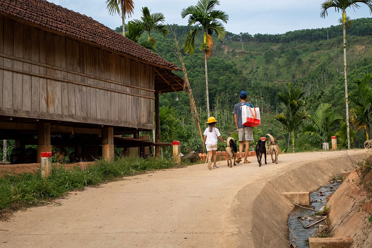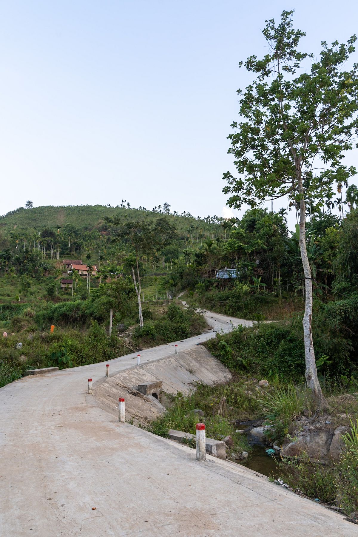 Con đường bê tông mới mở xuyên đồi, một nét hiện đại hiếm hoi giữa cảnh sắc nguyên sơ.