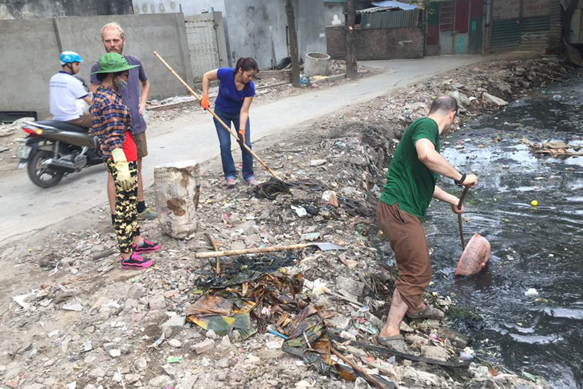 An American expat has found himself in a spot of trouble after he spent a day wading through a brackish canal in Hanoi's Cau Giay District cleaning up rubbish.