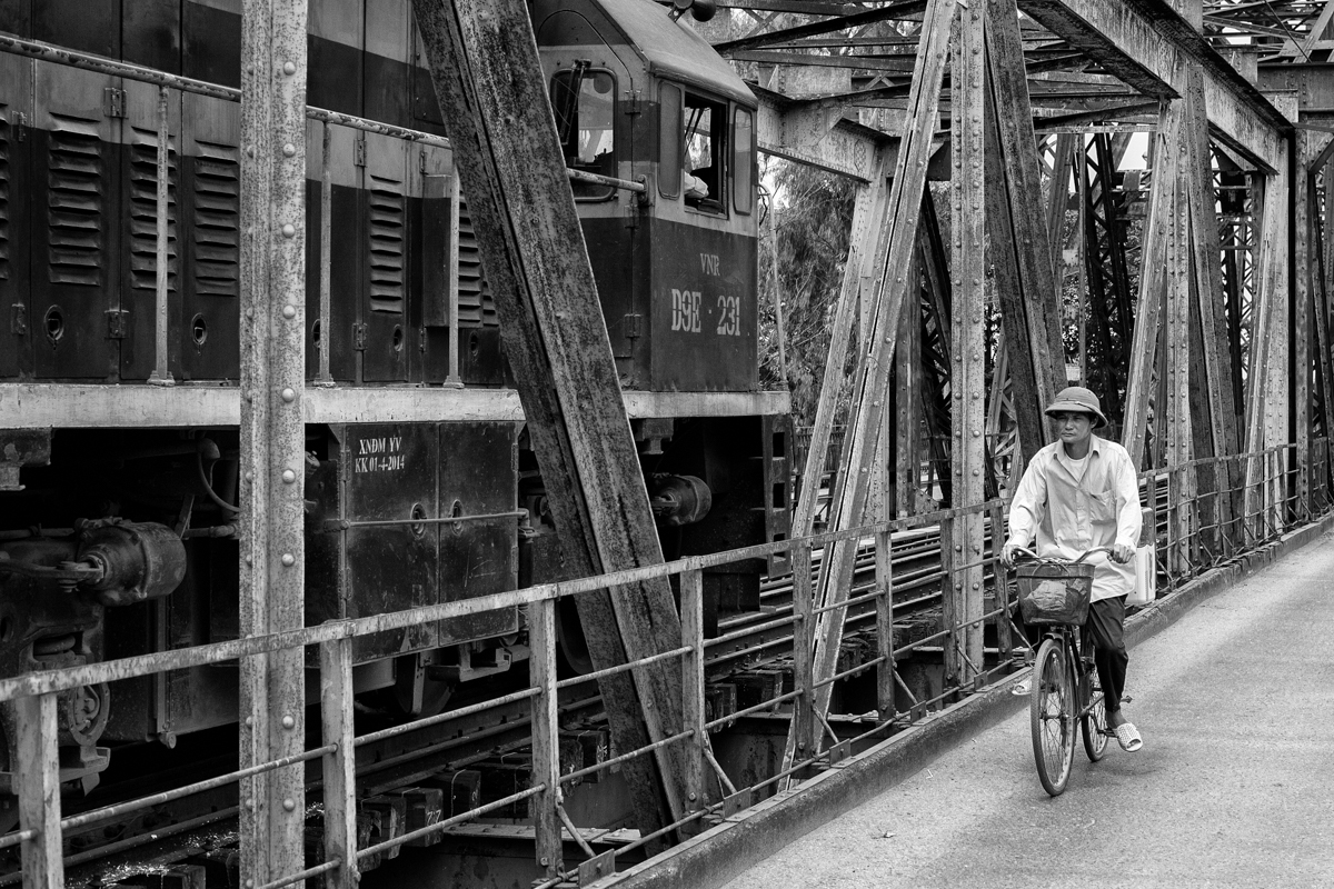 Hanoi’s iconic Long Bien Bridge, once described as a “misshapen but essential component of Hanoi’s heritage”, has spanned across the Red River for over 100 years. It has been – and will continue to be – the subject of countless images over the years. Its crumbling French architecture, passing trains and timelessness all scream: “Photograph me!” I’m definitely a sucker for this type of image, but Long Bien's surrounding neighborhood also provides a rich fabric of markets, textures and smiling faces to complement the iconic bridge. It takes but a slow stroll around the block and all the best bits of street photography present themselves.