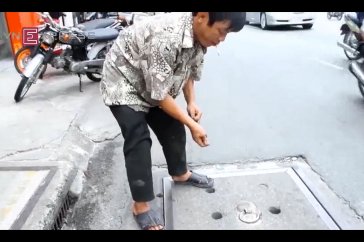 Sewers across Saigon and Hanoi have become a paradise for urban fishermen. This video, recently posted on VN Express, shows a Saigon man dropping his line into the holes of a sewer cover to hook his catch.