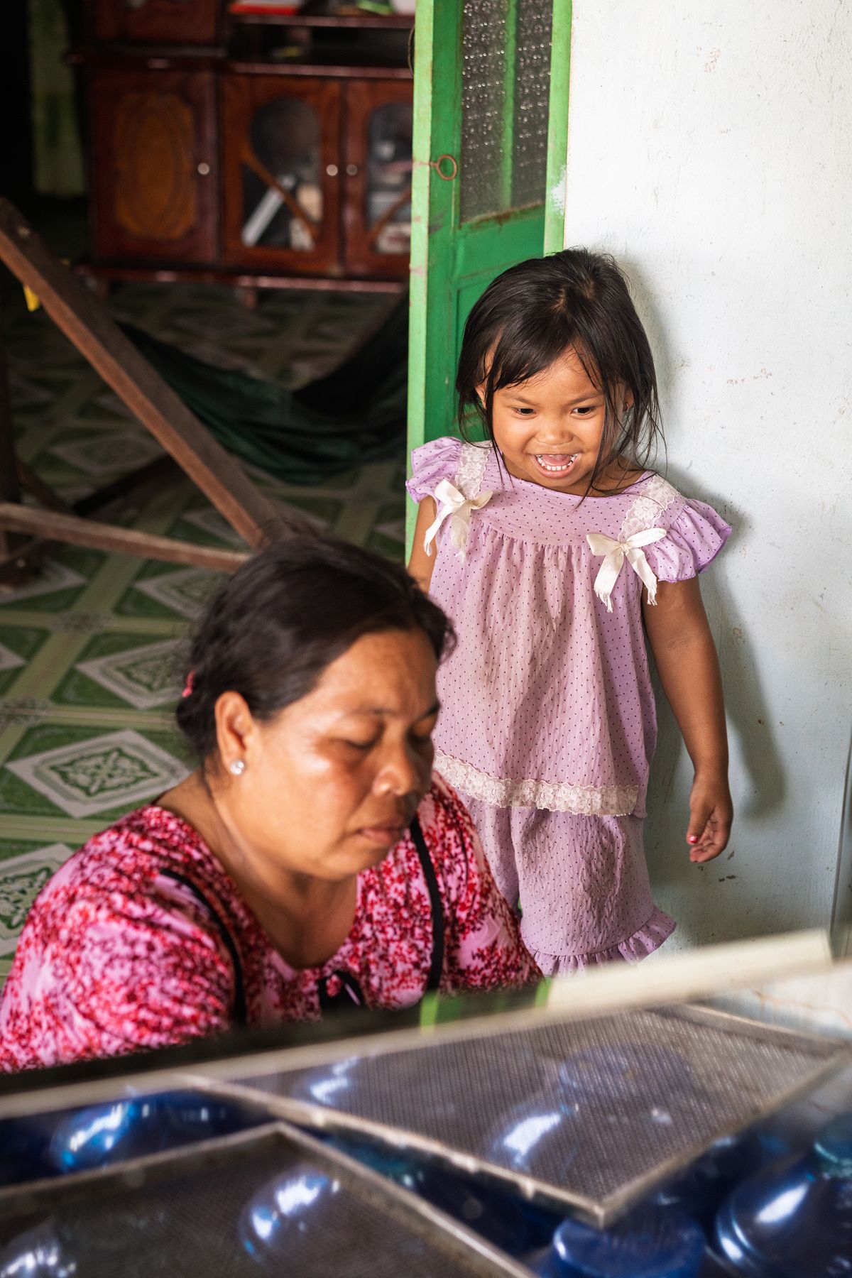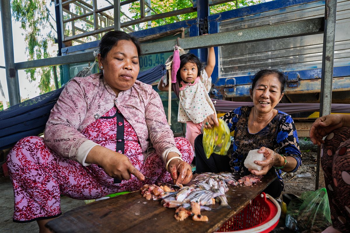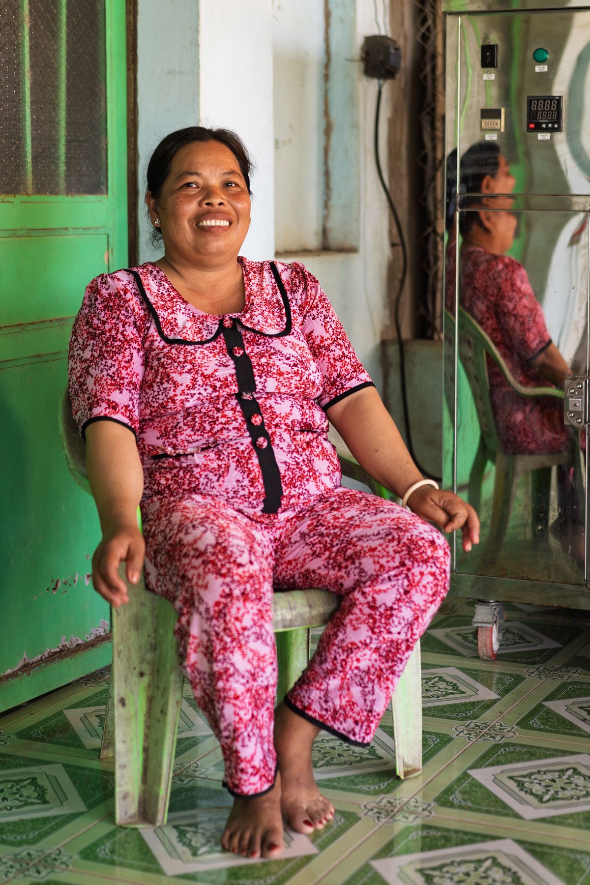 The Mekong Delta is developing faster than Google Maps can keep up with. A stretch of road that was too narrow to accommodate cars and required a transition to motorbikes just six months ago was under construction during our August visit. Gargantuan machines for laying pulverized gravel inched aside to let our 7-seater pass so we could reach the home of Nguyễn Thị Thu Thủy to check in on her small fish drying home business.