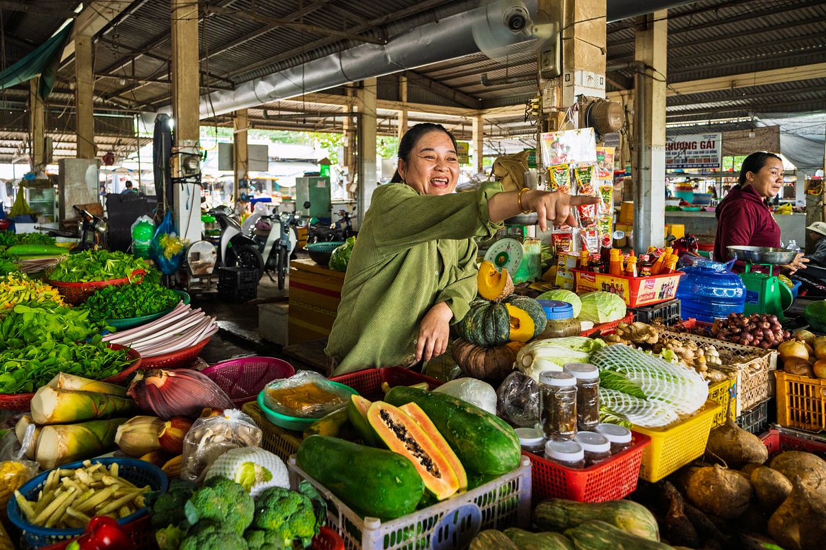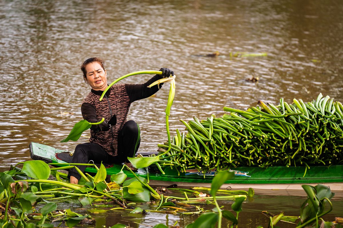 The Mekong Delta's many waterways and nutrient-rich soil support thriving market scenes.