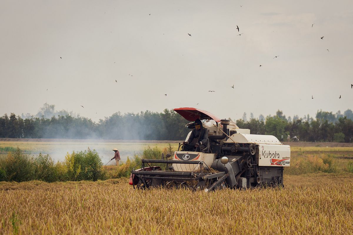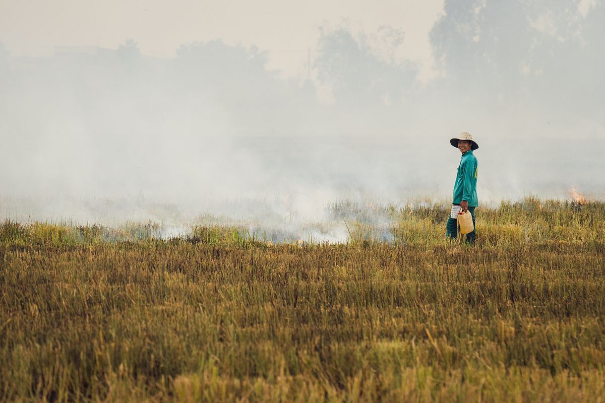 Harvesting conventional rice frequently involves environmentally-damaging field burning.