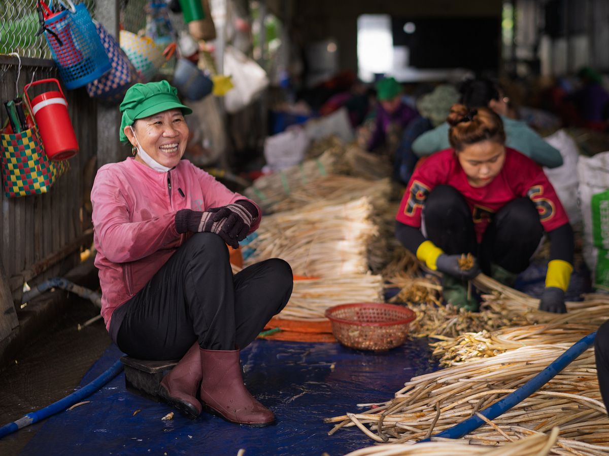 Even before producing carbon credits, the lotus industry is providing significant benefits to local communities, particularly amongst women. Like growing mushrooms, it allows women to stay closer to home, where they can care for family members. Trần Thị Kim Mai, an employee at a lotus processing facility, explained: “Before, I worked in a more hectic job far from home. Now that there’s a workshop here, I can work very close to my house.”