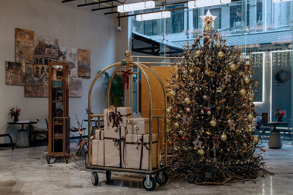 From a quaint rest area designed like an alleyway for folks on plastic stools sipping coffee out of glasses with colorful polka dots to rooms paying homage to homes' wicker cabinets and ceramic tiling, a restaurant that borrows design motifs from the nearby historic shipping yard, Hotel Indigo Saigon The City draws inspiration from the idiosyncrasies of its namesake location. A healthy dose of seasonal charm is being added this month as evidenced by the Christmas tree standing beside the vintage luggage at the lobby.