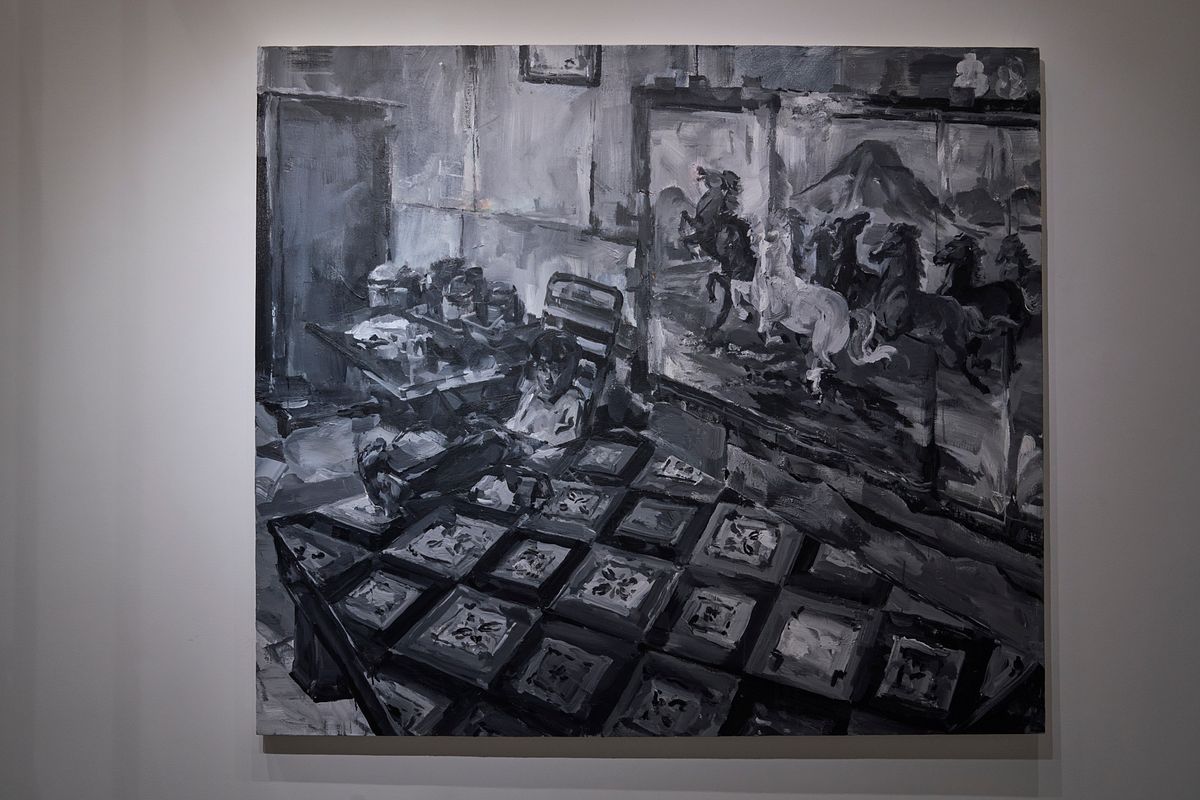 Inspired by Western modernist painting techniques, Bi Tuyền fuses them with Vietnamese domestic imagery and childhood nostalgia through her monochromatic painting Seven Green Beans. The absence of colors invites viewers to pause and pay attention to lights, shadows, and forms, with the artist asking: “Can black and white condense something essential?” Upon closer observation, one may notice the subtle traces of color beneath the monochromatic surface. Created amidst times of rapid cultural changes, the work resembles a moment of stillness – a reflection on what we choose to remember from the past as we move forward.