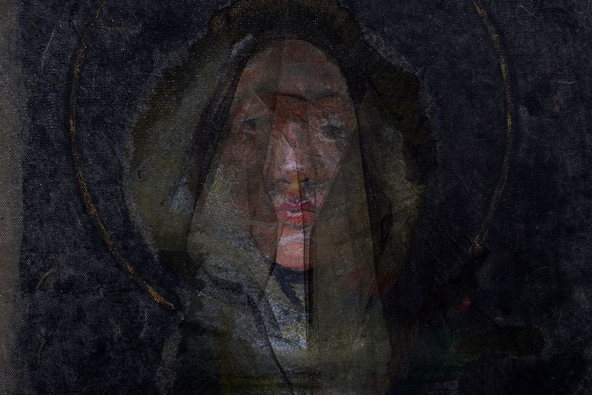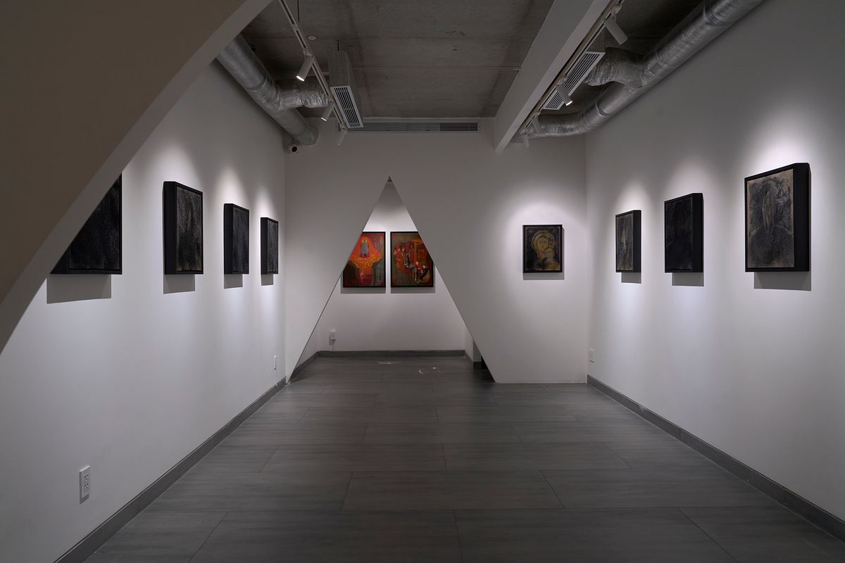 Known for merging Catholic faith with Vietnamese traditional culture, Nguyễn Đức Tín’s Faith, features black mosquito nets with slits that partly reveal portraits of Our Lady of La Vang (Đức Mẹ La Vang) and the Christ Child, and Catholic martyrs between the 17th and 19th centuries. Their lives remain largely unknown, yet they upheld their faith despite tragic deaths. The layered mosquito nets represent concealed histories, memory, belief, and the passage of time. Alongside is the Heart series where viewers’ distorted reflection appears – where faith is reframed not solely for religious devotion, but for one’s purpose and inner strength.
