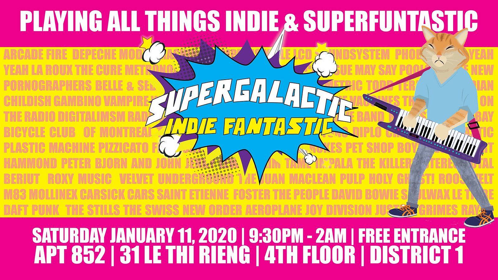 Do you miss dancing to indie rock? Well, join us at the coolest underground bar in town, Apt852 for a night full of all your favourite indie, indie-electro and all things superfuntastic!