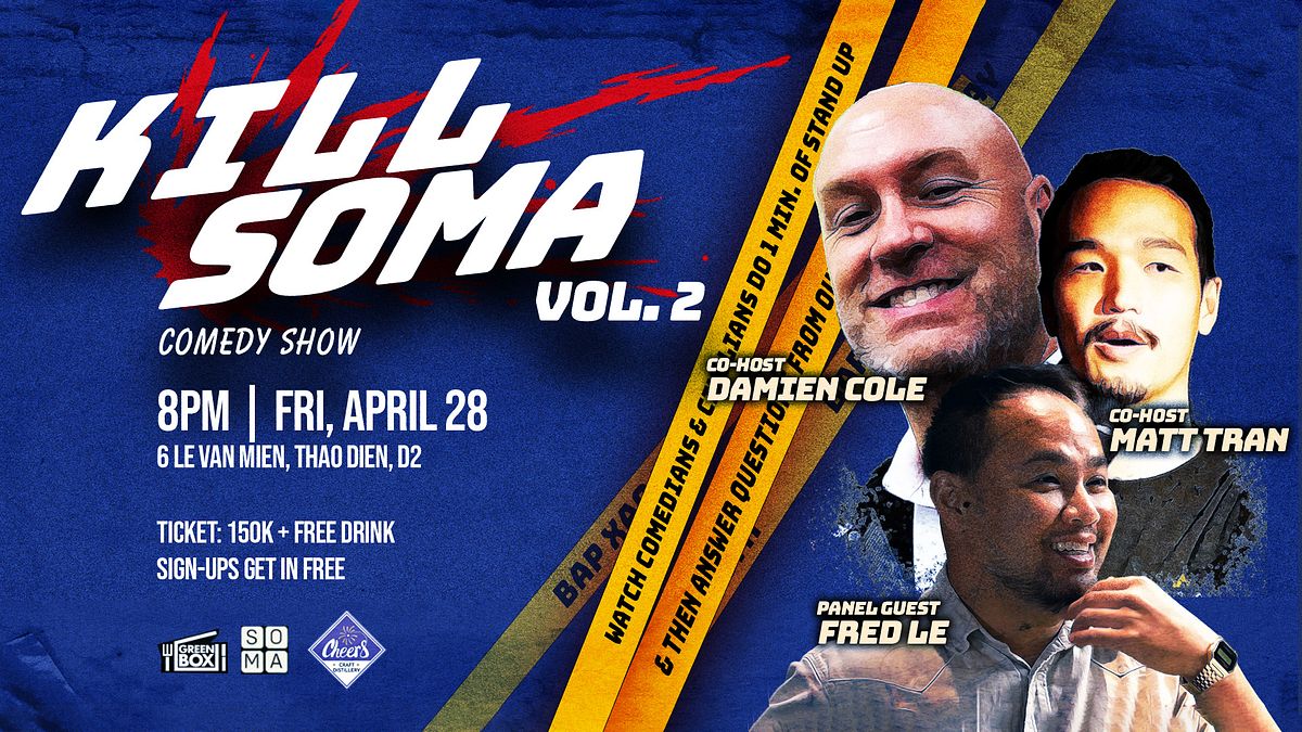 We're hosting the event at the fabulous Soma Saigon in Thảo Điền, with tickets starting at just 150k (including 1 FREE drink). Plus, the event will be filmed as a live audience video podcast, so come along and be a part of comedy history. Sign up to perform and get in for free. Invite your friends for a night of non-stop fun and laughter at Kill Soma!
