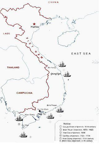 Map: Six ancient ships excavated in Vietnamese waters. Image via Vietnam National Museum of History.