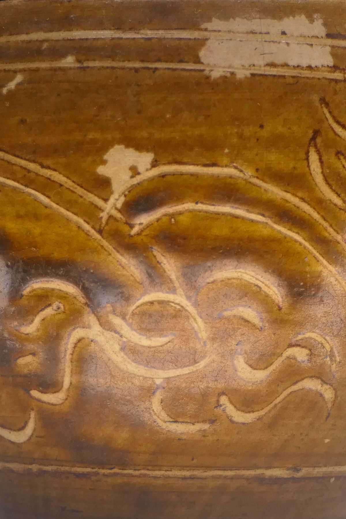 Covered jar. Iron-brown and white-glazed stoneware. Thailand, 15th century.