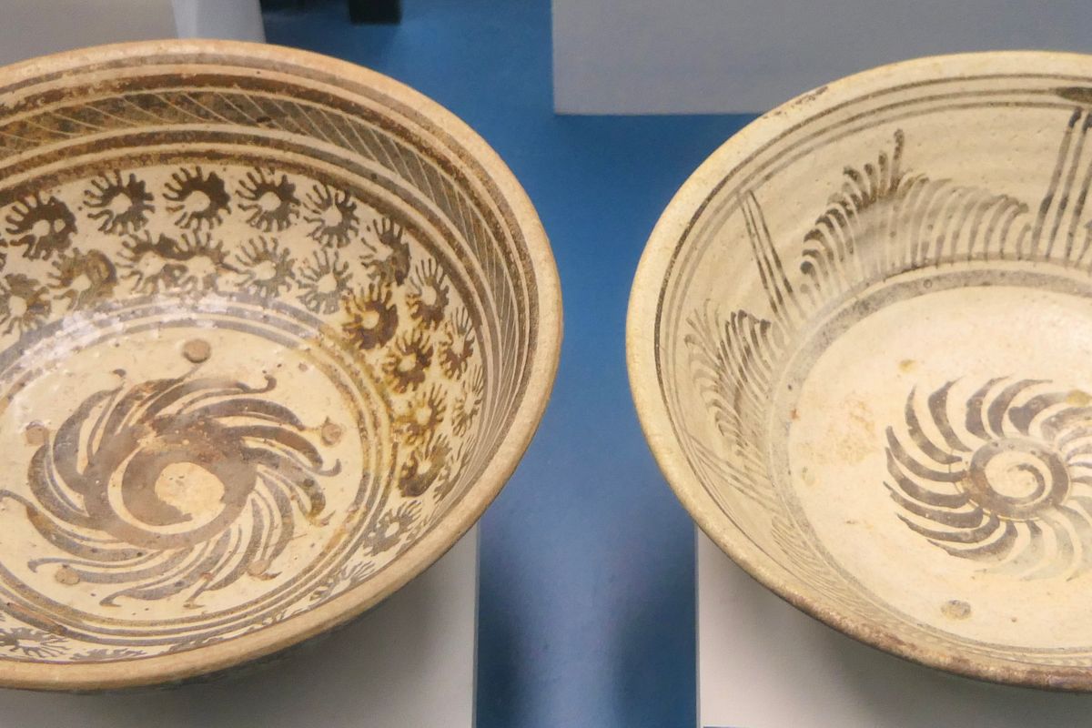 Bowls. Iron-brown and white-glazed stoneware. Thailand, 15th century.