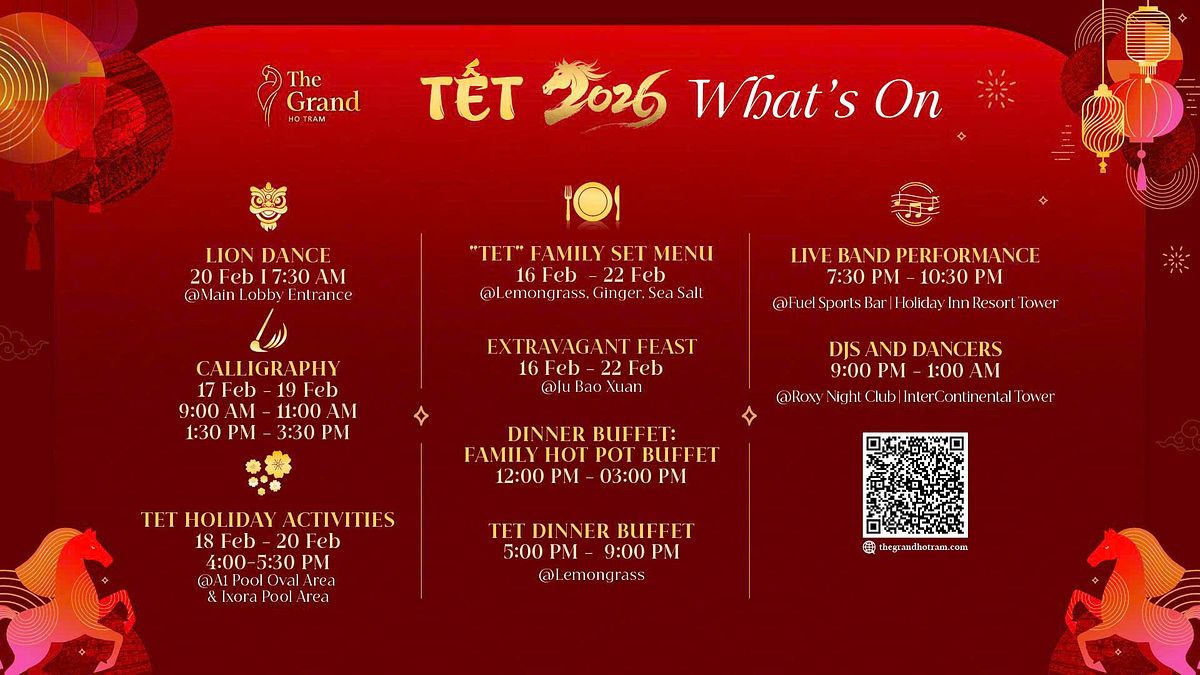 Much like the wide range of entertainment and culinary offerings that allow guests to celebrate Tết how it best fits their style and needs, The Grand Ho Tram has numerous accommodations for a variety of stays. The InterContinental Grand Ho Tram provides sophisticated experiences, and Holiday Inn Resort Ho Tram Beach is more comfortable and energetic, while Ixora Ho Tram by Fusion are ideal for couples, groups of friends, or families traveling that priortize peace and privacy close to nature. There truly is no wrong way to welcome the year of the horse by the sea.