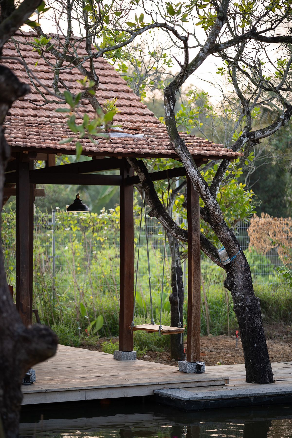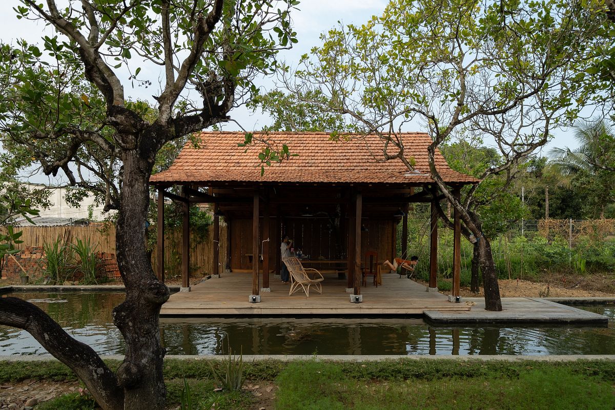 G+ Architects rose to this challenge when building Nhà vườn Điều (Cashew Garden House), a humble homestay just outside Cát Tiên National Park. While embodying the area's abundance of nature, the minimalist structure, conceived as a second home and short-term accommodation, makes accommodations for the cashew trees. A central pond was created to further support biodiversity as well as maintain cool temperatures for cashew trees and humans alike.