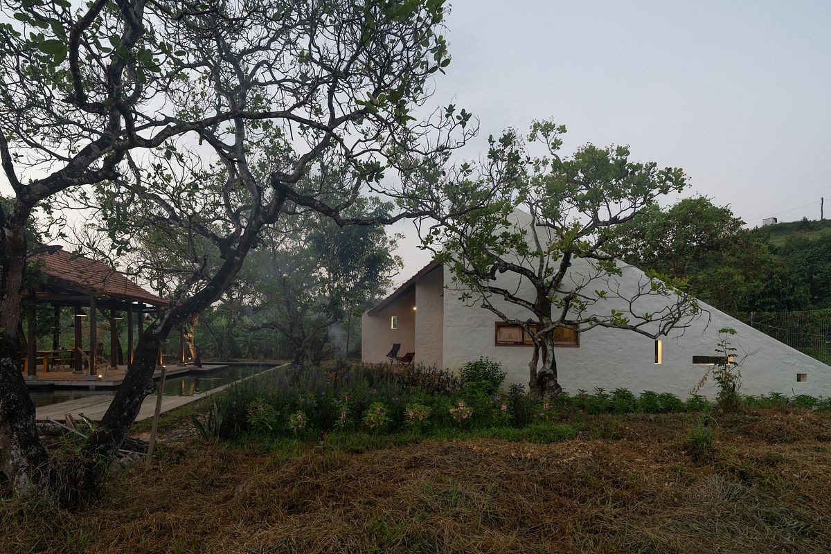 While its humble features and rustic design appear simple, the architects performed rigorous testing to achieve it. To understand how the layout would perform in real conditions, they even built a 1:1 mock-up on-site. The final product's stooped roofs, sloping walls, and directional verandas thus take advantage of natural airflow and sunlight patterns, reducing heat and increasing comfort.