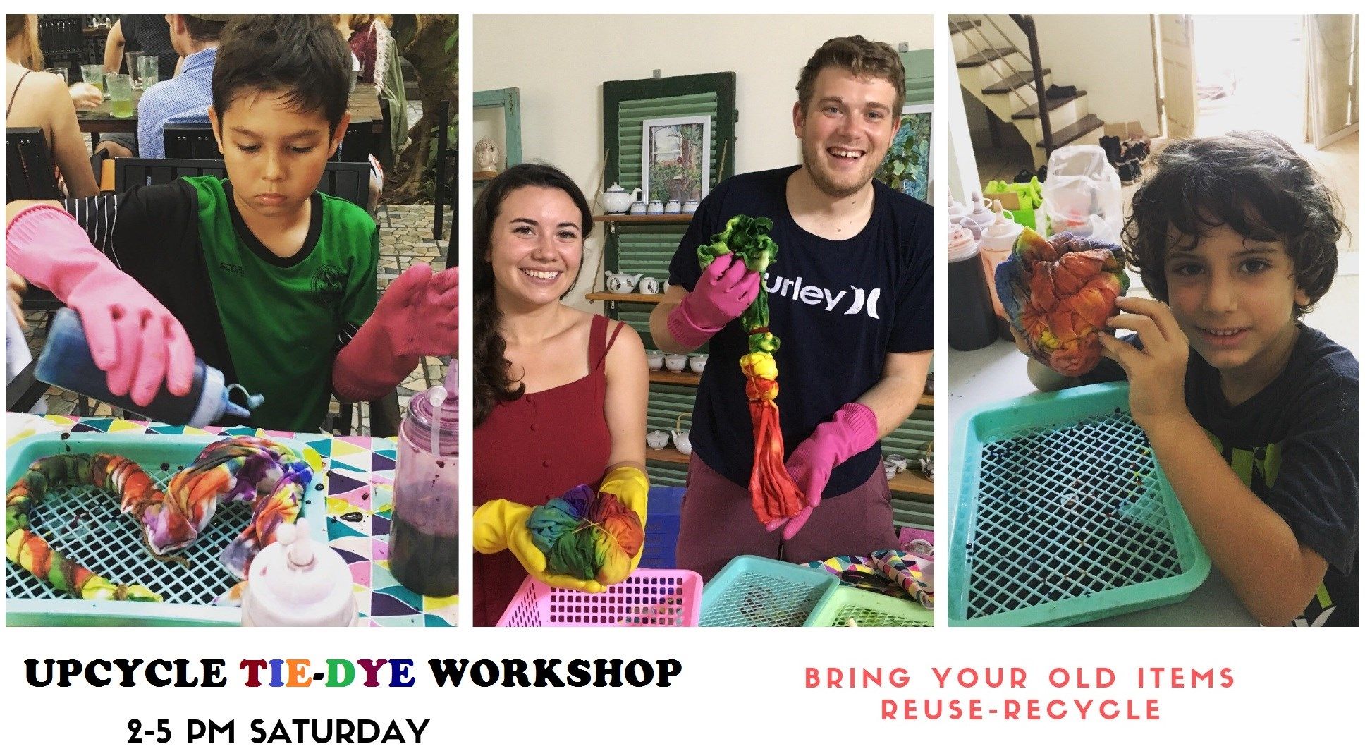 We’d like to bring you a workshop where you can tap into your creativity and upcycle old garments/clothes into something new through tie-dye and creative cutting.